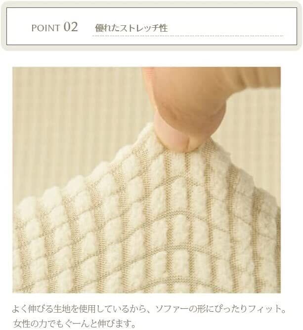 簡単着脱・使いやすい:ソファーに掛けて、簡単に切り替える。女性一人の力でも楽に、素材がぐんぐん伸びるから、ソファーの形に沿えるようにフィット。