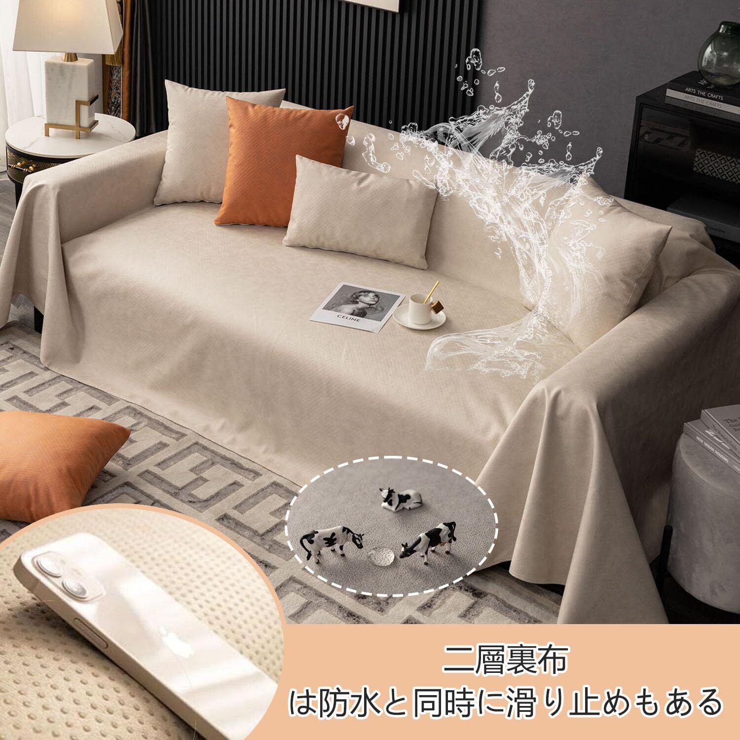 【あらゆる面で防水性、耐油性、防汚性】通常のソファカバーは防水性がありません/漏れますが、当社のテクノロジーファブリックソファカバーには完全防水の仕切り層があり、浸透するのは困難です。 ソファの表面に水滴がついた場合は、ペーパータオルやタオルで拭いてください。 除菌・消臭効果があるのでペットやお子様がいるご家庭でも安心してお使いいただけます。