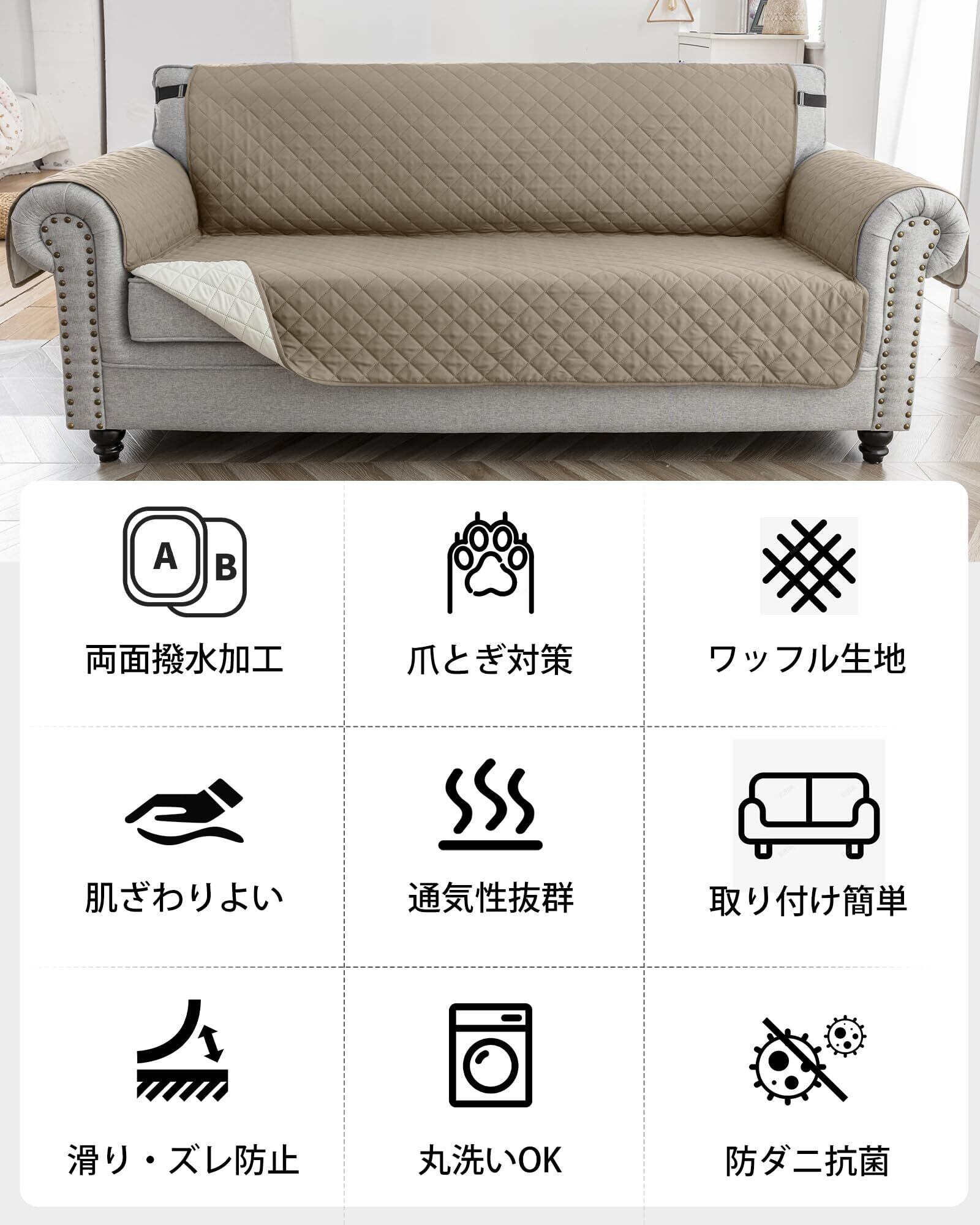 「仕様」サイズ:3人掛け・190*279cm、座面サイズ:55*167cm、張り地;ポリエステル100%、中材:抗菌防臭中わた、裏地:ポリエステル+撥水加工+滑り止め加工、固定バンド