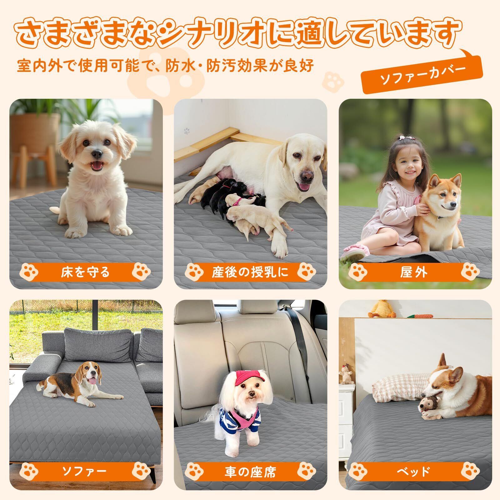【おしゃれでマルチシーン対応】:再利用可能な防水ソファーカバーは、室内および屋外で使用でき、折りたたみ式で携帯に便利です。旅行時に簡単に交換や清掃ができるため、非常に便利です。三人掛けソファ、二人掛けソファ、L字型ソファ、コンビネーションソファ、U字型ソファ、リクライニングチェア、ベッド、ペット用ケージ、床など、さまざまな家具に適しており、部屋の装飾を簡単に変え、実用性と美しさを兼ね備えています。特に、ペットの出産後、手術後の失禁、赤ちゃんの寝汗やよだれ、小さな子供の夜尿などに最適です。このマルチカバー ソファー 厚手は、家具をペットの引っ掻き傷、噛み傷、唾液から守るのに効果的です。さらに、屋外のピクニックにも使用でき、家具を清潔に保ちながら、家族にとってより便利なアイテムです。