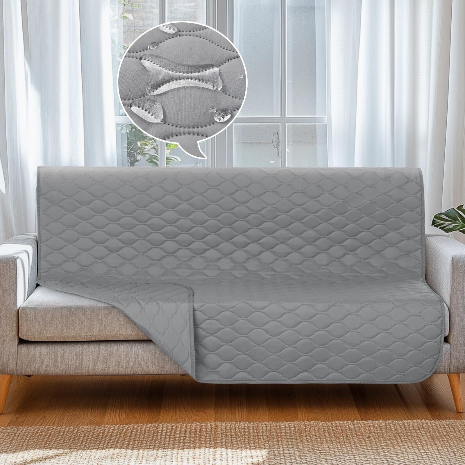 LOOBANI ソファーカバー 防水 マルチカバー 防水シーツ シングル ダブル ベッド リバーシブル 防水カバー ベッド 犬猫対策 保護家具 ソファカバー 洗濯機で丸洗い 繰り返し使える 噛み耐性 速乾 毛髪不粘着 防塵 汚れ防止 傷防止 爪とぎ防止 おしゃれ おねしょシーツ 大判 ソファパッド ソファー/ベッド/椅子などに適用 (グレー, 107cm*173cm)