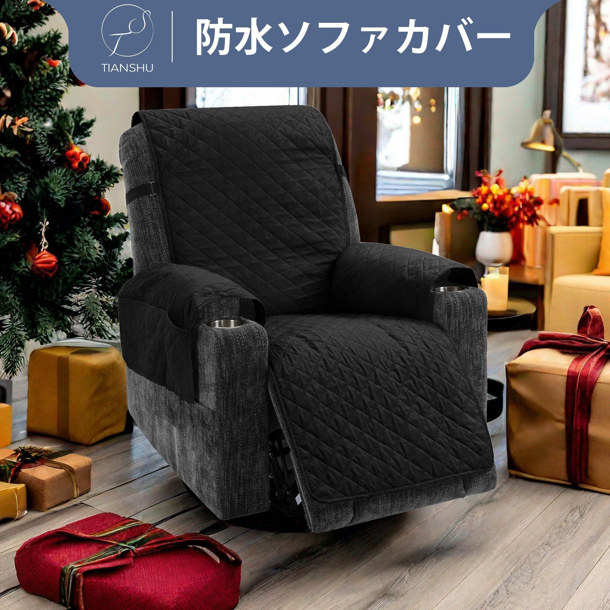 TIANSHU ソファーカバー リクライニングソファ 防水 マルチカバー 肘付き 肘付き 犬猫対策 ソファーマット 滑り止め 撥水加工 ソファカバー 無地 シートカバー 傷防止 爪とぎ防止 防塵 汚れ防止 洗える 四季適用 (ブラック)