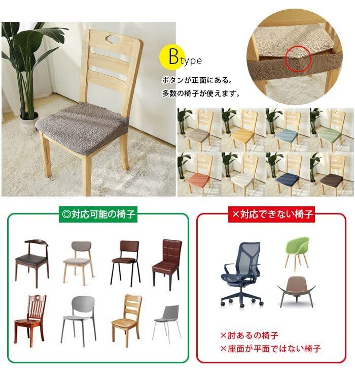 【ボタン付タイプ、取付簡単】 本体をしっかり包み込むよう、フチにゴムひもがついております。肌触りがよく、快適にお使いいただけます。 椅子の座面にカバーをかぶせるだけでボタンをつけて一瞬で簡単に取り付けることができます。伸縮性が優れて取付や取り外しが簡単で変形しにくいです。