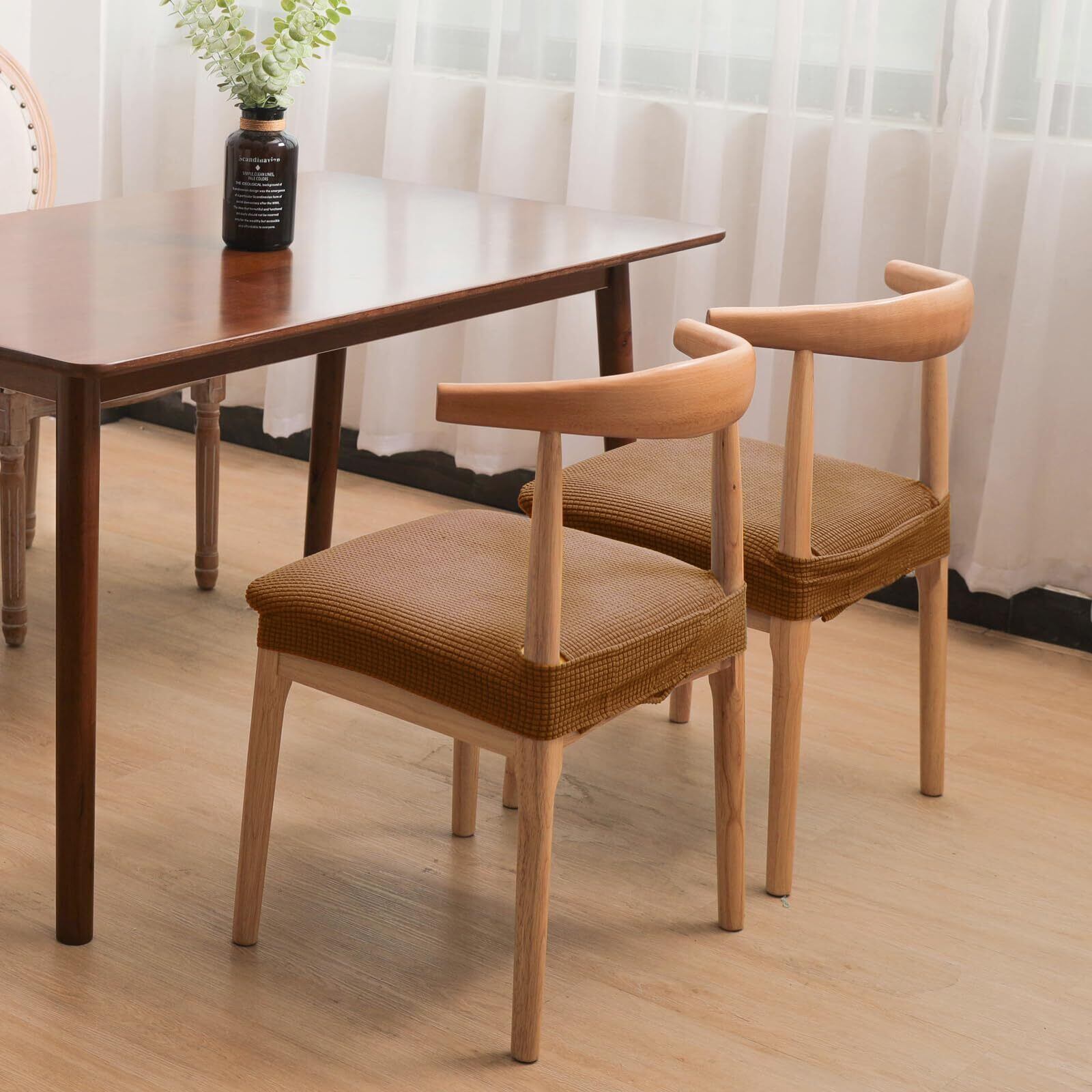 【伸縮素材】: 椅子カバーは伸縮性のある柔らかい素材でできており、自由に伸びて着脱が簡単です。伸縮性のあるエッジがチェアカバーをしっかりと固定します。ズレたり滑ったりしません。古くなった椅子をアップグレードし、食べこぼしや汚れからシートを守ります。