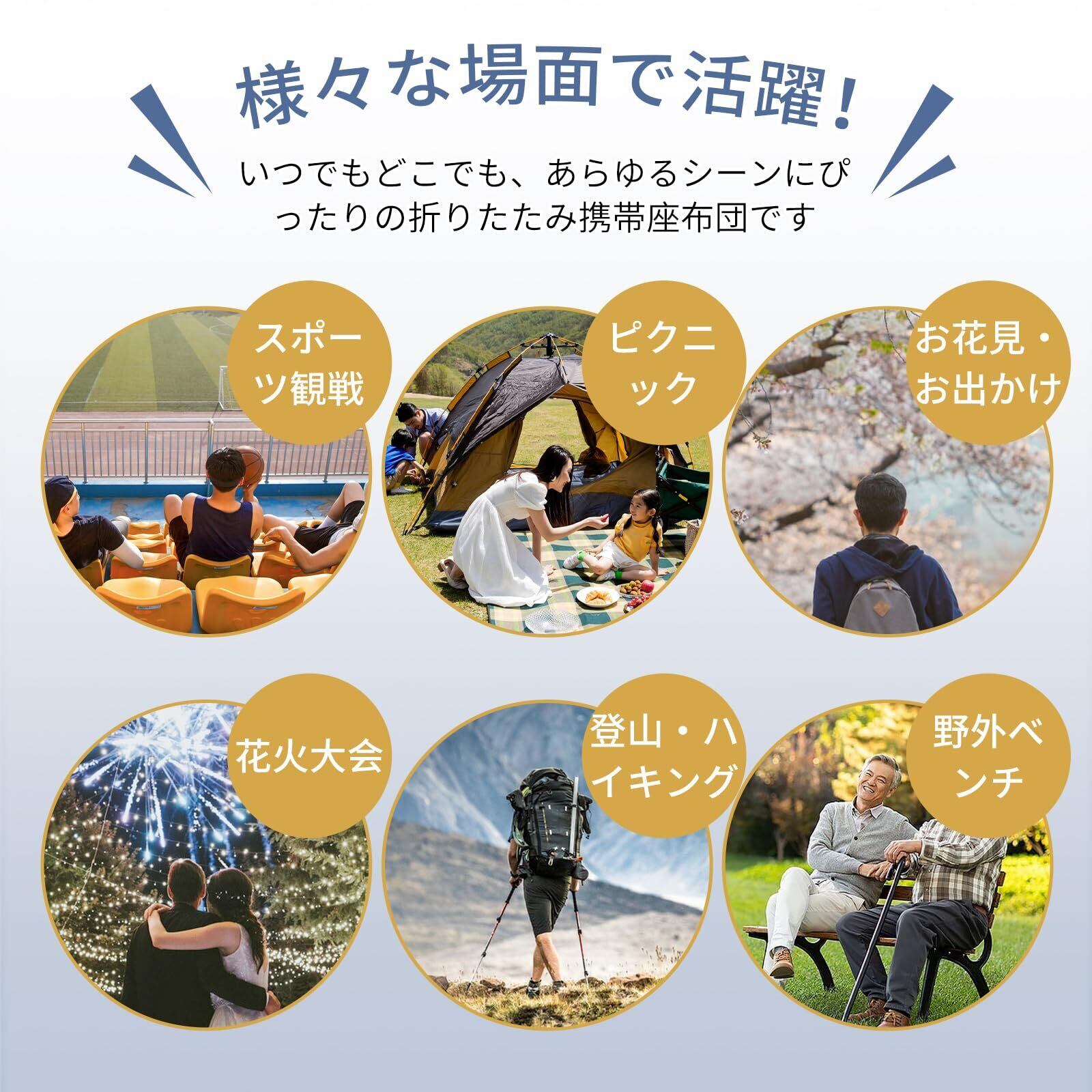 【多用途で季節を問わず活躍】この携帯クッションは、ピクニック、花見、キャンプ、スポーツ観戦、登山、ハイキングなど、さまざまなシーンでご利用いただけます。季節を問わず、快適な座り心地を提供し、楽しみをサポートします