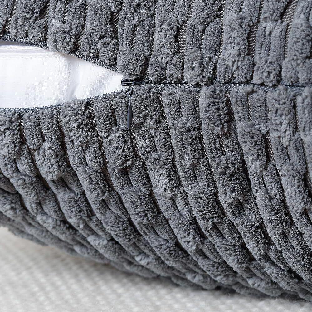 Madizz クッションカバー 2枚セット 柔らかい コーデュロイ 装飾的な 枕カバー 贅沢 スタイル クッションケース 寝室用 ソファ用 45 x 45 cm グレー