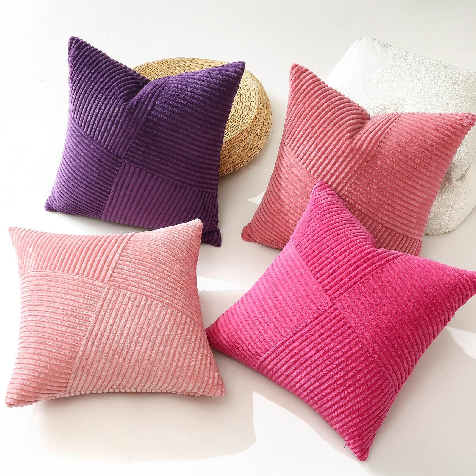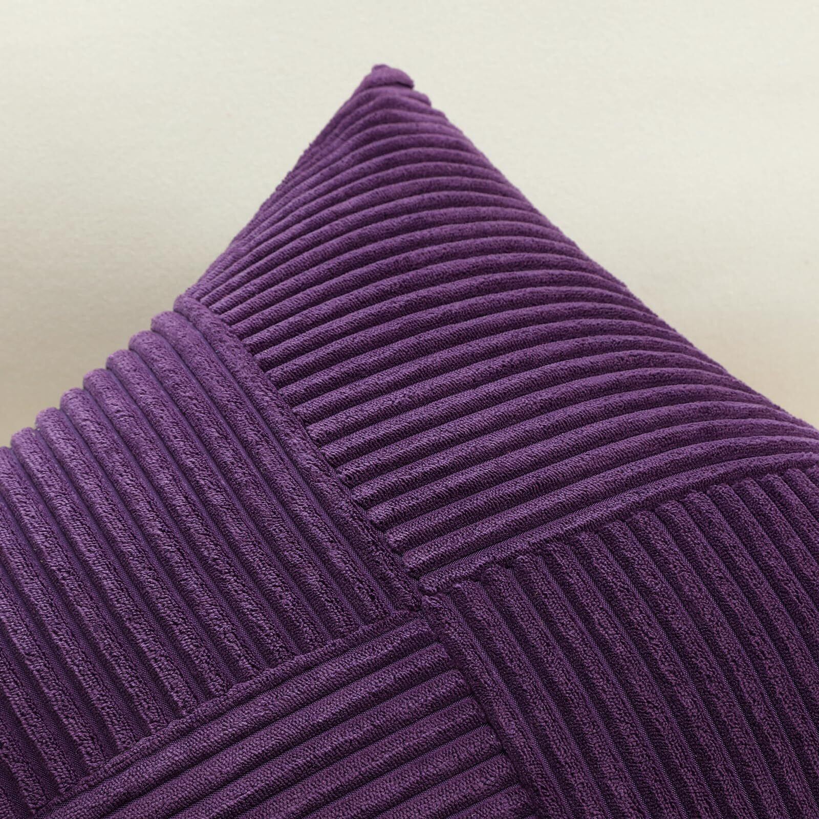 Otostar クッションカバー 45x45cm 1枚 おしゃれ 可愛い 無地 コーデュロイ 4分割斜めストライプ デザイン モダン ジッパー式 インテリア 室内装飾用 装飾用ピローカバー (45x45,パープル)