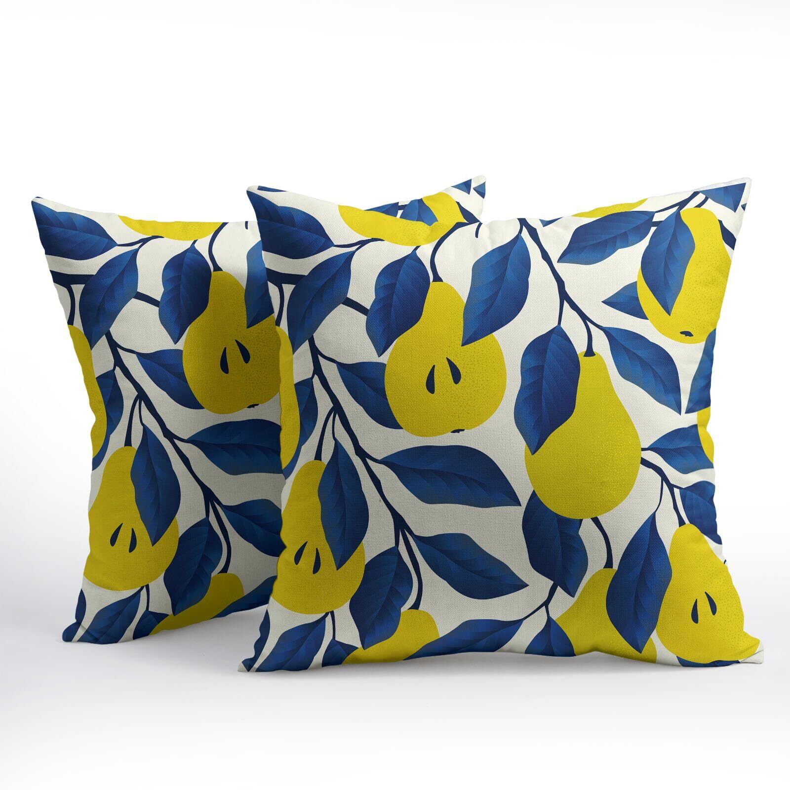 【数量限定】PAKAZA クッションカバー 黄緑色のセイヨウナシ 鮮やかなブルーの葉 フルーツ柄 鮮やか 果物 夏向け ポップ おしゃれ 緑 赤 30×30cm 北欧 クリスマス ギフト 誕生日 父の日 母の日 インテリア 展示 ホテル 店舗用 家庭用 2枚セット リネン風 枕カバー ソファー 車 オフィス 春夏の季節感