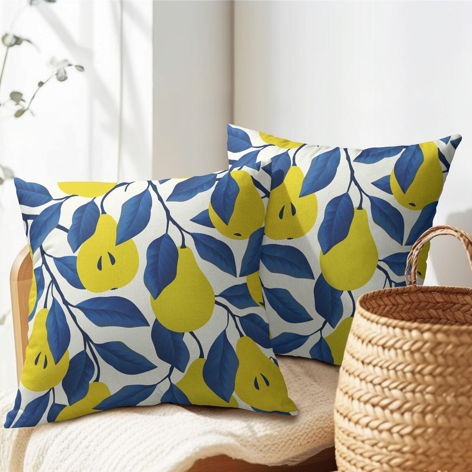 PAKAZA クッションカバー 黄緑色のセイヨウナシ 鮮やかなブルーの葉 フルーツ柄 鮮やか 果物 夏向け ポップ おしゃれ 緑 赤 30×30cm 北欧 クリスマス ギフト 誕生日 父の日 母の日 インテリア 展示 ホテル 店舗用 家庭用 2枚セット リネン風 枕カバー ソファー 車 オフィス 春夏の季節感