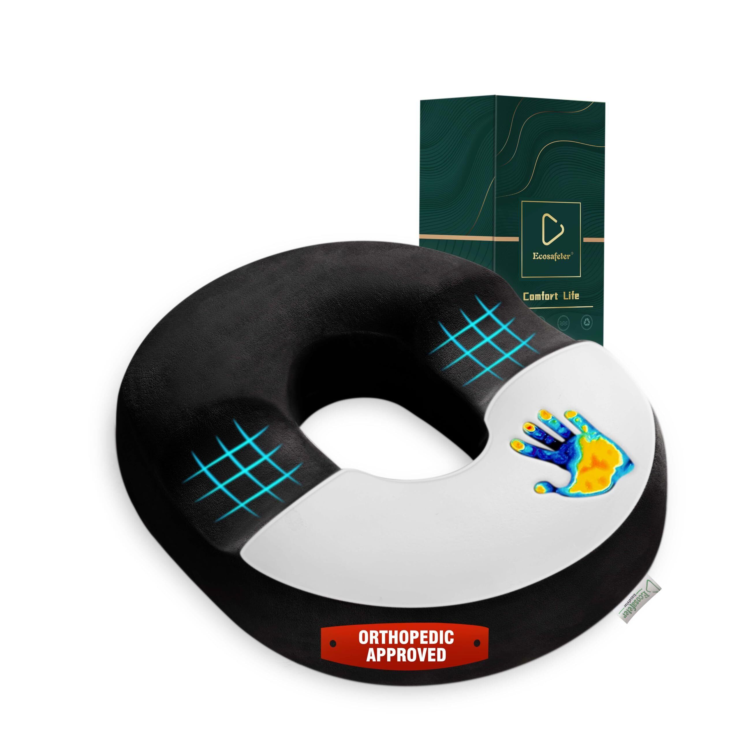 【医師推奨の痔用クッション - 美しいパッケージ】-ドーナツクッション 高密度メモリーフォーム 産後の痔、尾骨、臀部の痛みに適しています 通気性 滑り止め底 (黒)