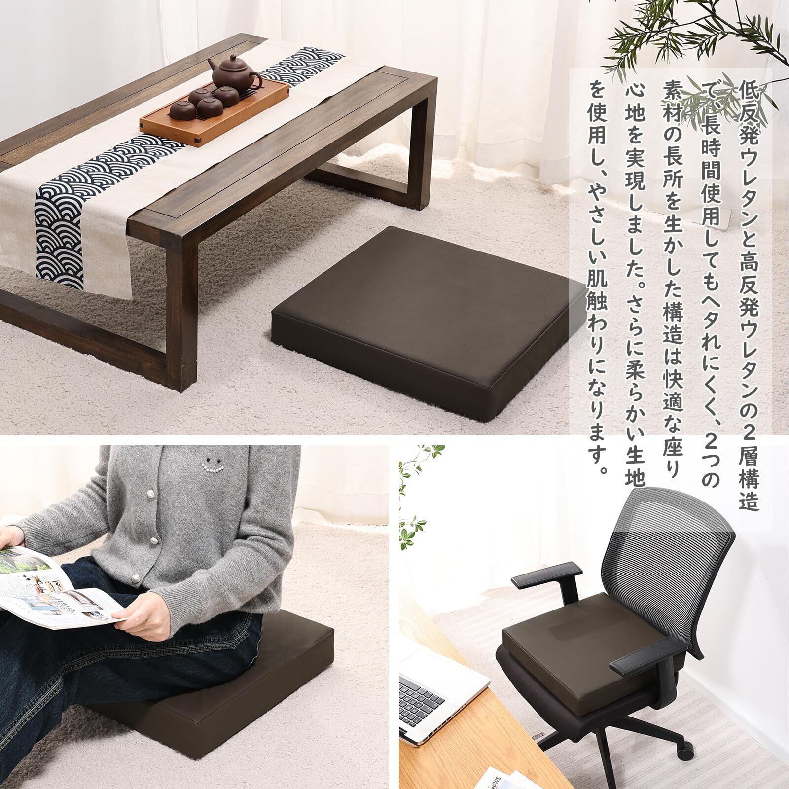 GOFORIT 座布団 クッション 低反発+高反発 拭ける 厚め 7cm 撥水 椅子 クッション ざぶとん フロア 2層構造 42cm 四角 ブラウン PVCレザー生地