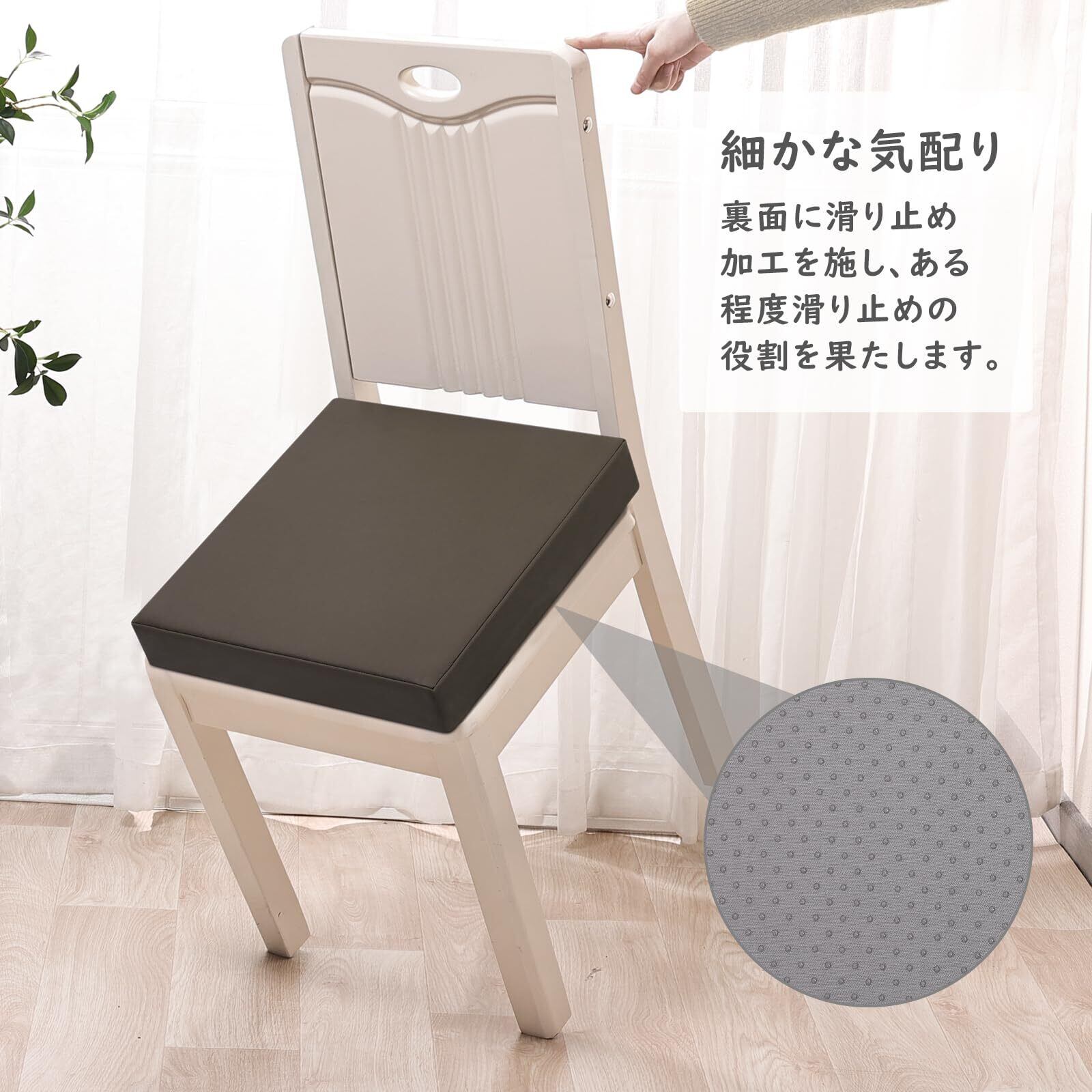 【在庫セール】GOFORIT 座布団 クッション 低反発+高反発 拭ける 厚め 7cm 撥水 椅子 クッション ざぶとん フロア 2層構造 42cm 四角 ブラウン PVCレザー生地