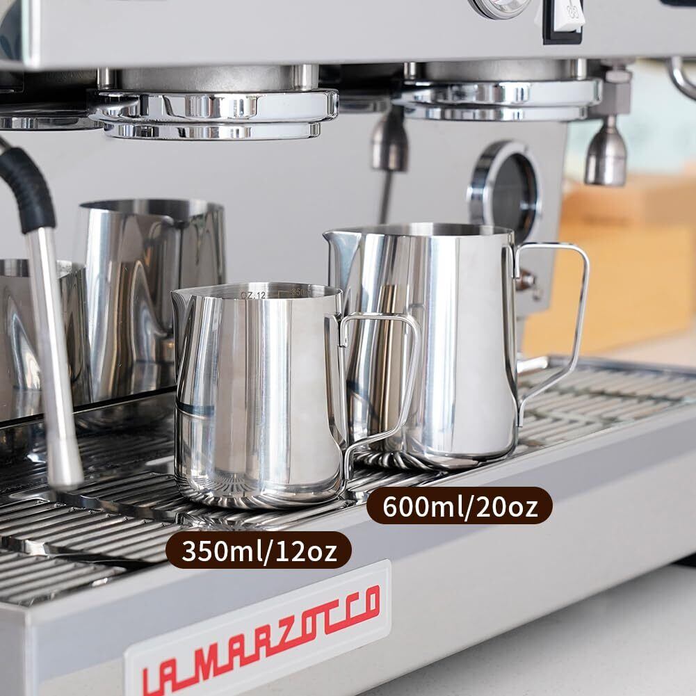 watchget ミルクピッチャー ミルクジャグ ラテアートピッチャー ミルク泡立て器ジャグ エスプレッソ蒸気ピッチャー ステンレス製 目盛り付き ラテアート カプチーノカップ シルバー 350ml(12oz)
