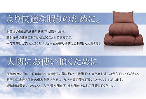 サイズ:掛布団150×210cm(シングルロング)、敷布団100×200cm(シングル)、枕43×63cm