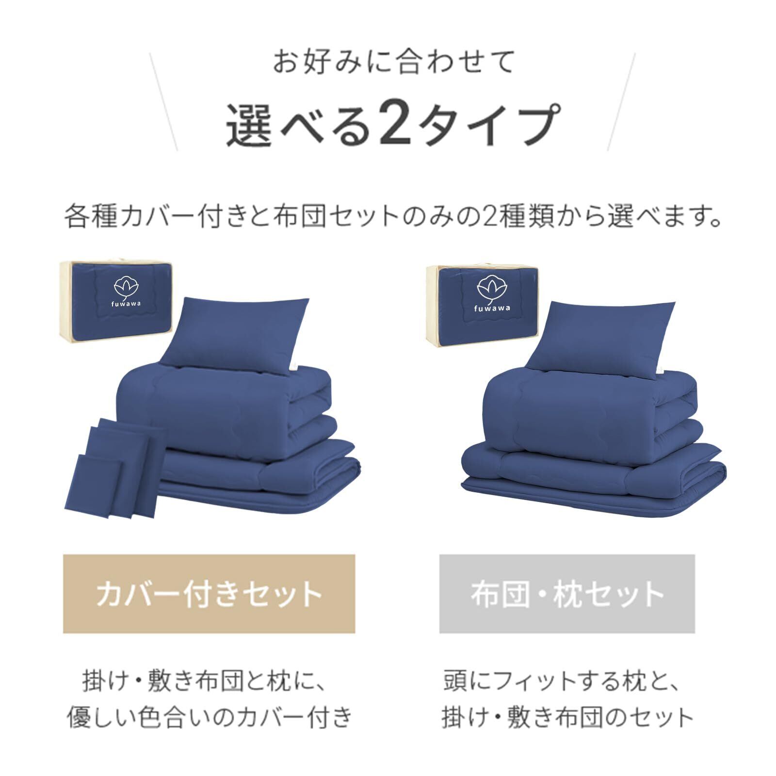 fuwawa 布団セット シングル 7点セット 来客用布団セット 防臭 寝具セット【中綿1.6kg 掛け布団・固綿入り敷布団・枕・洗えるカバー3点・収納ケース付き】ふとんセット SEK認証 柔らかな肌触り 軽量 通気 組布団セット アレルギー対策 オールシーズン 新生活応援 ネイビー