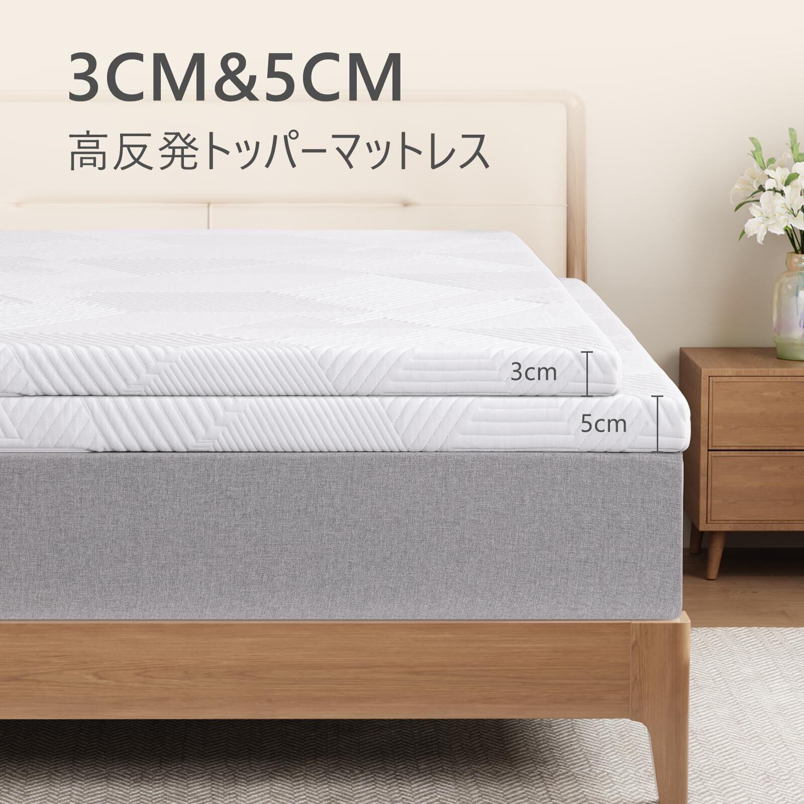 Hillmoonri トッパーマットレス セミダブル 厚さ5cm 高反発 硬さ180N 敷布団 高通気性 洗えるカバー 収納便利 布団の上 120x195x5CM ホワイト