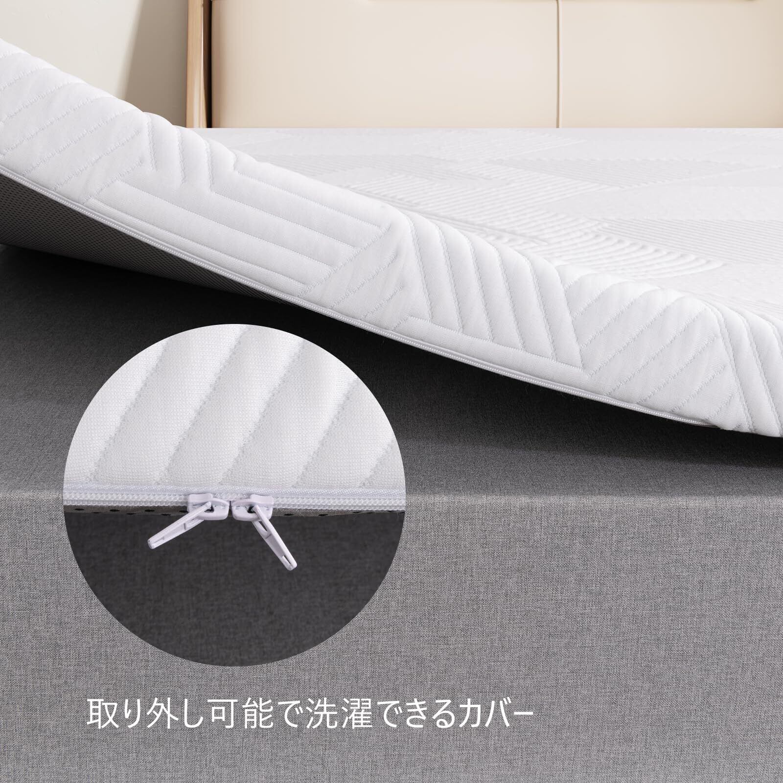 取り外し可能なマットレスカバー:柔らかく肌にやさしいニット生地を使用し、便利なジッパー設計で取り外しと取り付けが簡単です。60°Cで直接洗濯できるため、ほこりや細菌を効果的に除去し、マットレスを常に清潔に保ちます。毎晩の健康な睡眠を守ります。