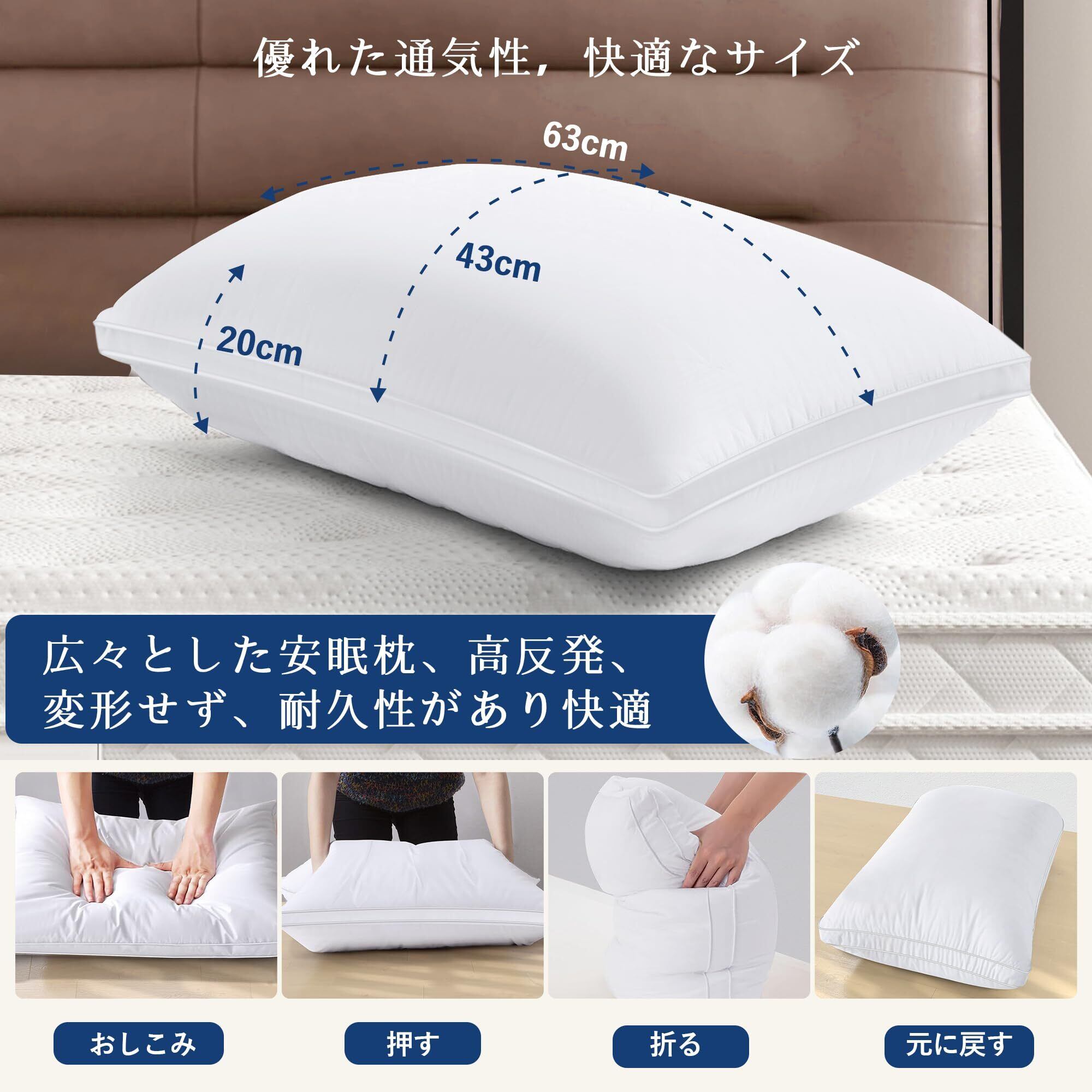 【新春セール】【 限定ブランド】Bolinker 枕 まくら 綿100% ホテル い ホテルまくら 通気性 高反発枕 丸洗い可能 両面 柔らかい (43*63*20 CM1個入)(ネイビー枕カバー2個付属)