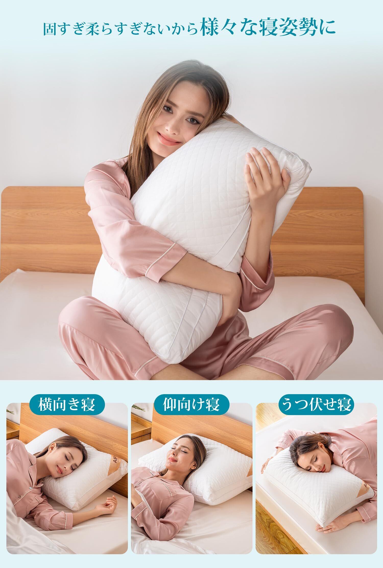 【贅沢睡眠体験】羽毛のように柔らかな感触で包み込むフィット感、ご自宅でホテルのような贅沢睡眠体験!心地よさを追求したホテルスタイルのまくらが上質な眠りを演出します。