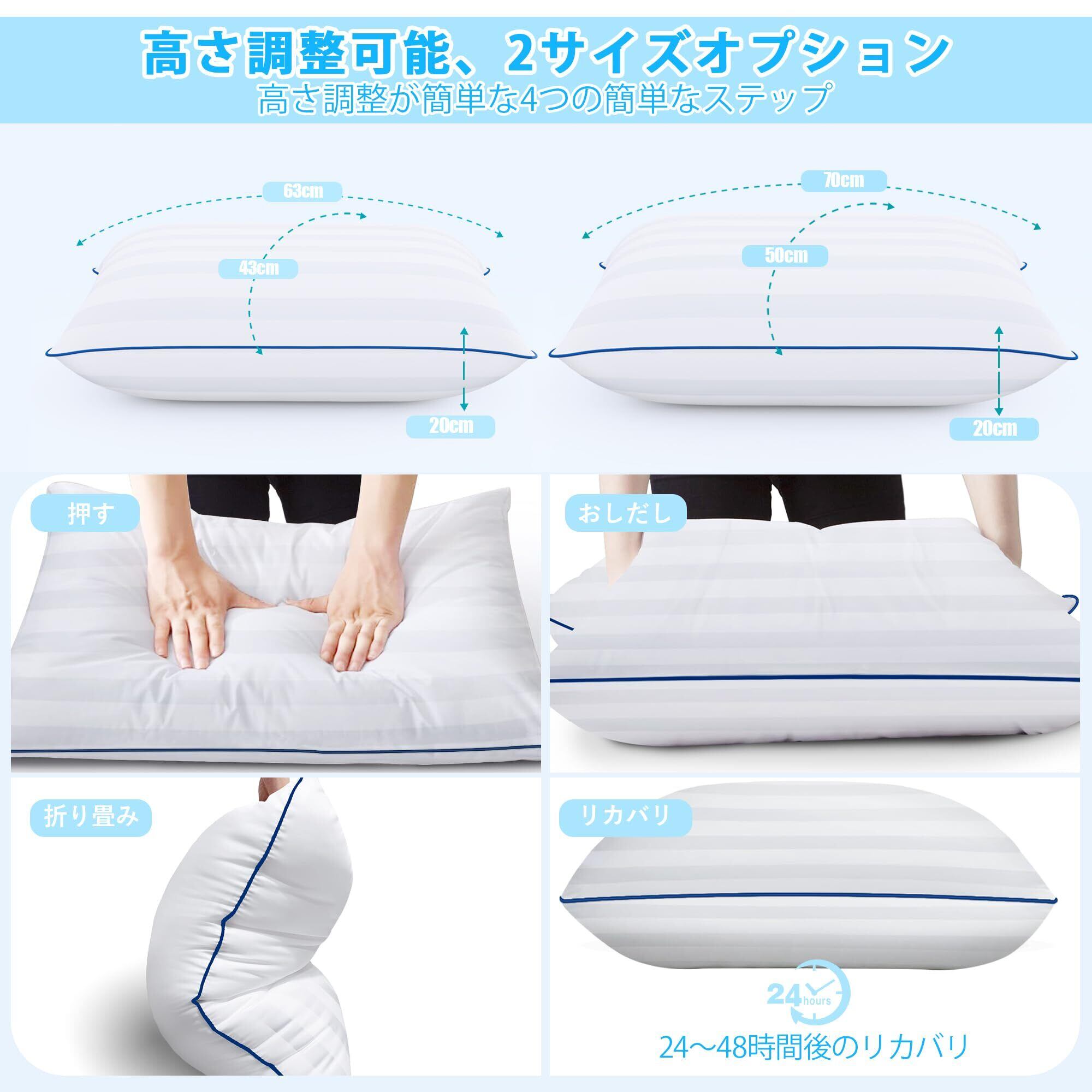 【多仕様、多色選択】Bolinker の2つの枕63*43*20CM、70*50*20CM(重量:约1.6kg)、2つの枕(重量:约2.2kg) 枕カバー2個付属。横幅が大きく、寝返りを打ってもヘタリがなく、ゆったりとしたサイズで快適な睡眠が得られます。枕の柔らかさには個人差がありますので、高めの位置で眠りたい方には、枕を2枚重ねでご利用するとより効果的です。