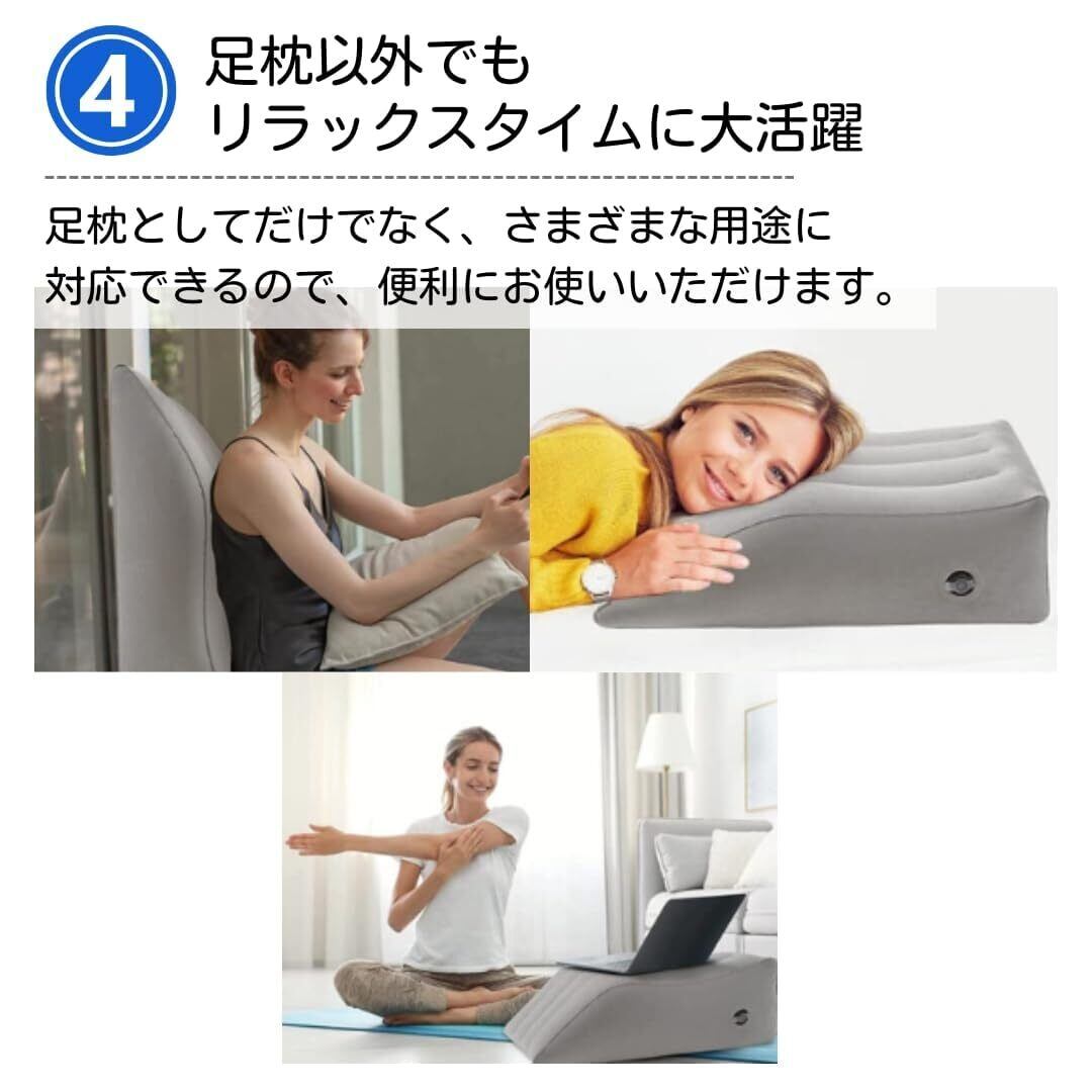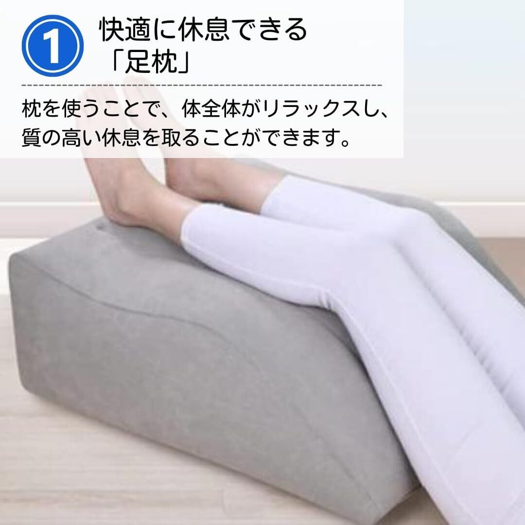 【人間工学に基づいたデザイン】足枕は脚を心臓より高い位置に上げることで、血液やリンパの巡りがスムーズにし、膝や腰に負担をかけにくい寝姿勢に導きます。