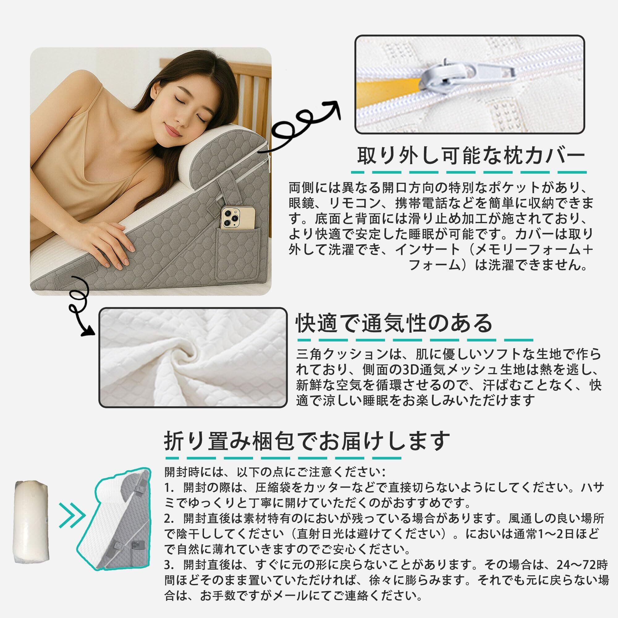 【親切なアドバイス】最高の性能と快適さを実感するために、三角クッションを受け取ったら、風通しの良い場所で12~24時間ほど自然に広がるのを待ちましょう。気温や環境によって膨らむ時間が異なる場合がありますが、24~48時間ほど置いておくと、しっかりとしたサポート力を発揮します。
