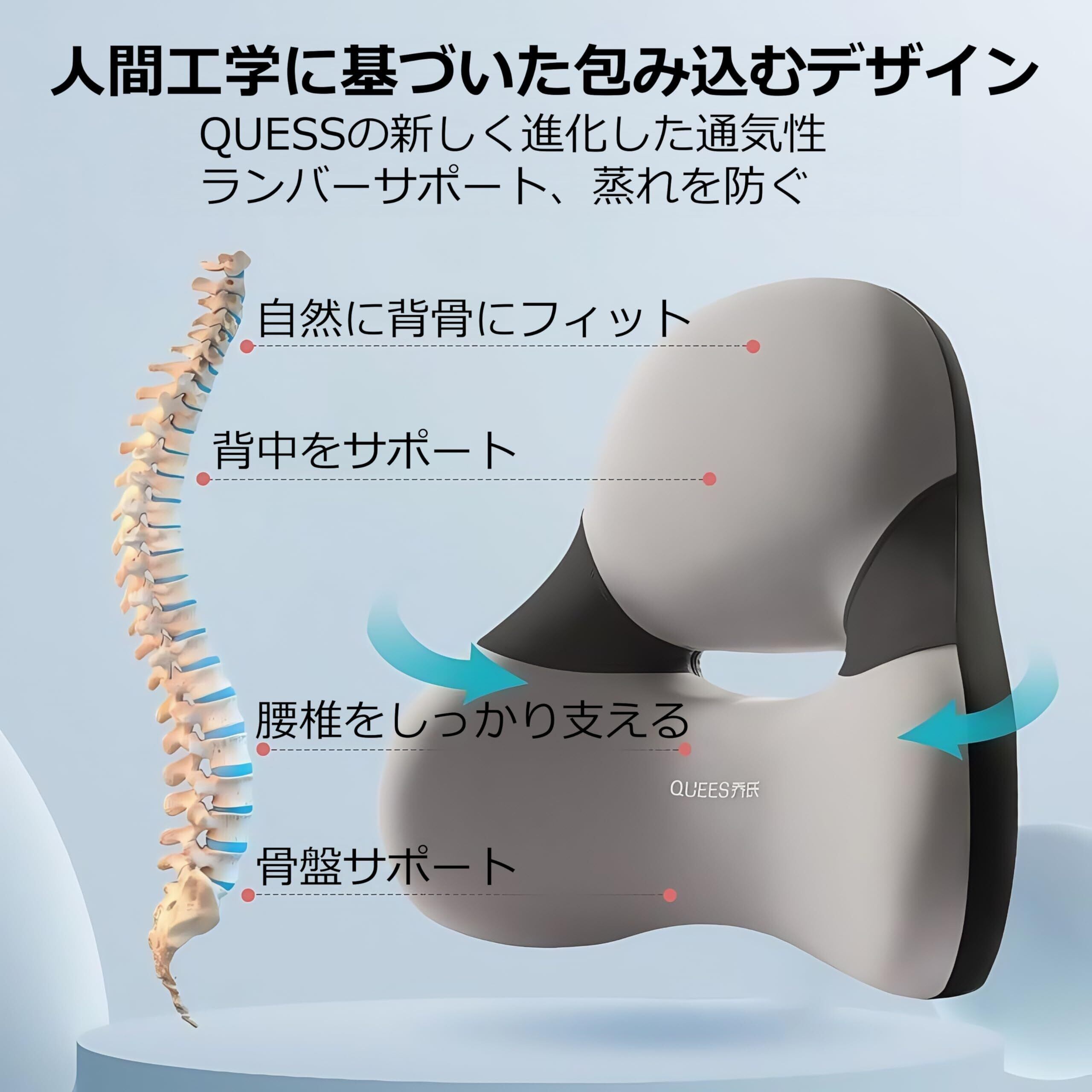 【腰を包み込む3D立体構造】人間工学に基づいた流線型の立体構造が腰椎のカーブにぴったりフィット。座面と背もたれの隙間を埋めて、腰をしっかりサポート。長時間の運転やデスクワークでも腰への負担を軽減し、姿勢を整えてくれます