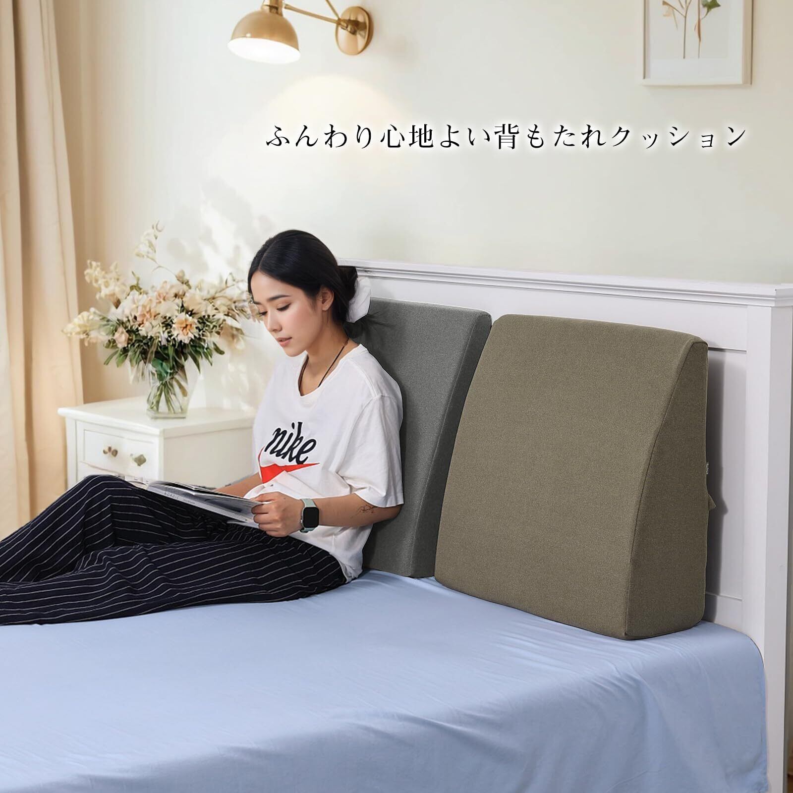【多用途クッション】壁、ベッド、ソファなどにもたれて使用できます。寝る時、昼寝などに枕として;ゲーム、映画鑑賞などくつろぎタイムに背もたれクッションとして;リラックス時に、足を上げてむくみを解消する足枕も使えます。