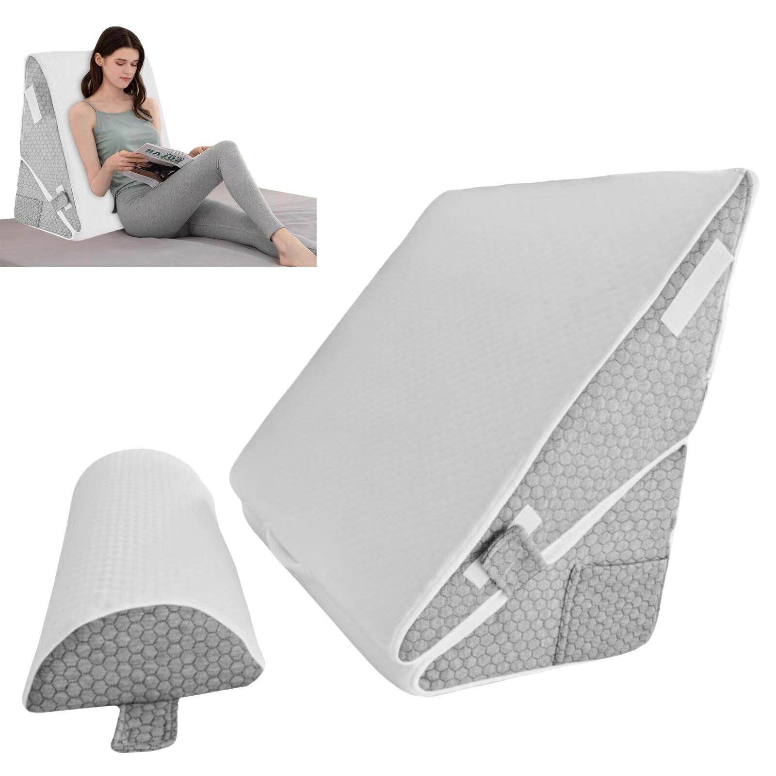 【特価セール】三角クッション 三角枕 背もたれ クッション テレビ枕 高反発メモリーフォーム 傾斜枕 背もたれクッション 腰枕 高さ調節可能 7-in-1 逆流性食道炎 枕 いびき対策 睡眠サポート なだらか枕 足上げ 読書用 お年寄り老人用 睡眠、胃酸逆流、首の痛み、腰痛、手術後の回復に
