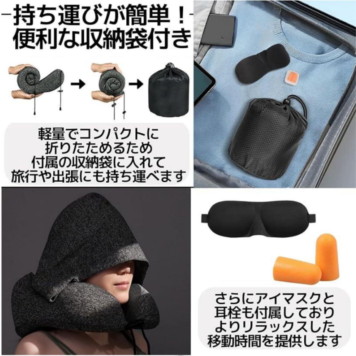 Flosme ネックピロー 飛行機 旅行 低反発 首枕 携帯枕 クッション コンパクト 携帯 顔を隠す 首が痛くならない トラベル枕 U首まくら クッションカバーアイマスク 耳栓 収納袋 洗える 車 新幹線 ソファ 椅子 お昼寝 便利グッズ 快眠 仮眠 人気 自宅 旅行 プレゼント-グレー