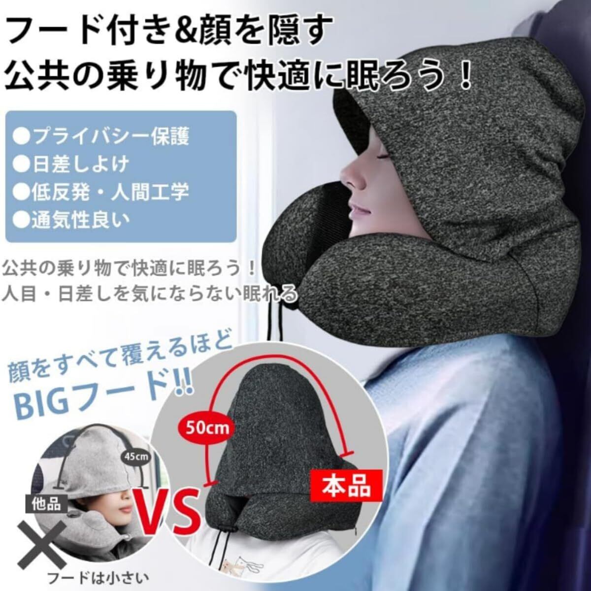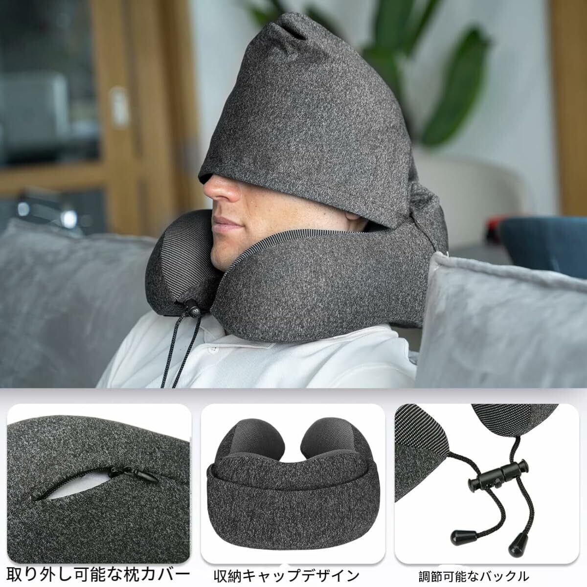 フード付き遮光デザイン:ネックピロー フード付きは肌に優しいカチオン生地で作られており、フード付きの遮光デザイン、多角度ラッピングが施され、フードは顔のほぼ全体を覆うのに十分な深さがあります。パーカーのフードのような形をしており、休憩時に顔を覆うのに適しています。旅行中邪魔されることなく休むことができます。