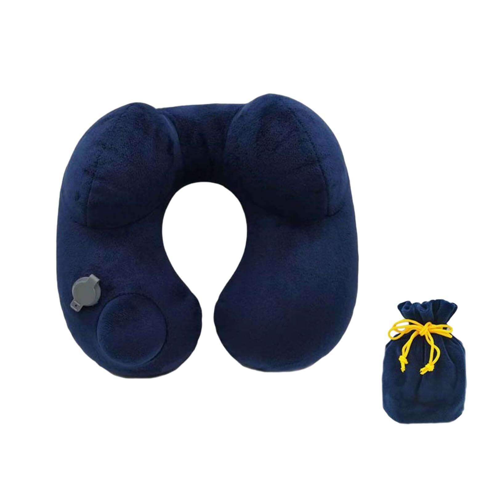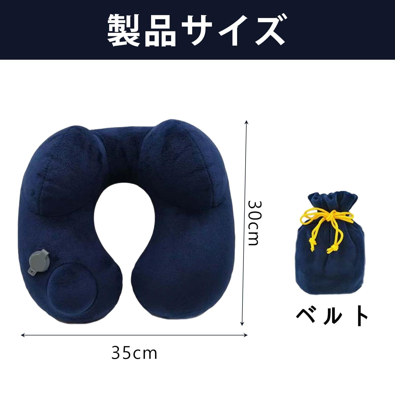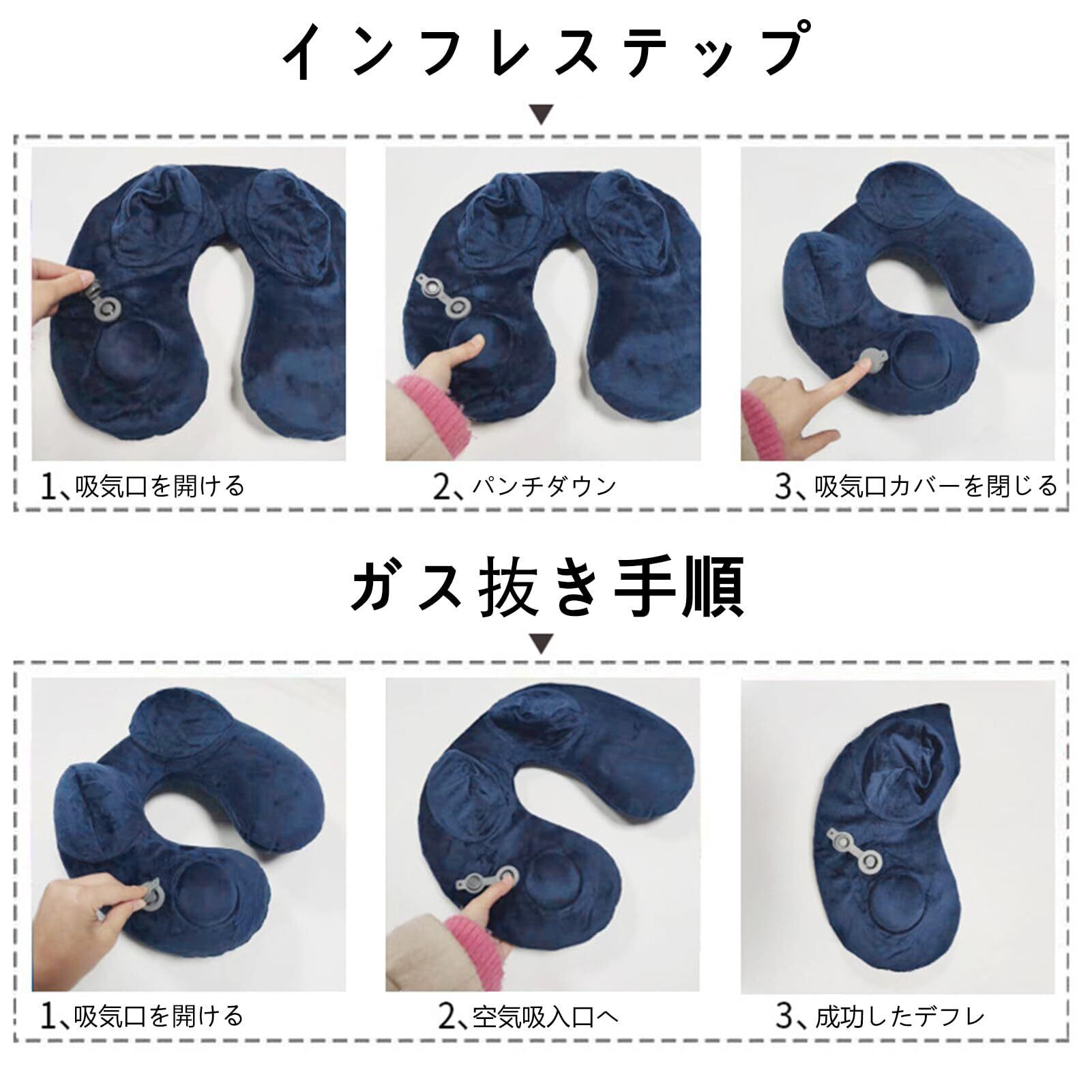 ネックピロー U型まくら 携帯枕 首枕 エアーピロー 枕 エアー 空気 低反発ネックピロー U型 オフィス デスクワーク 休憩中 ドライブ 旅行 軽量 旅行枕 洗える 新幹線 飛行機 バス 自宅 昼寝枕 収納バッグ付き (紺色)