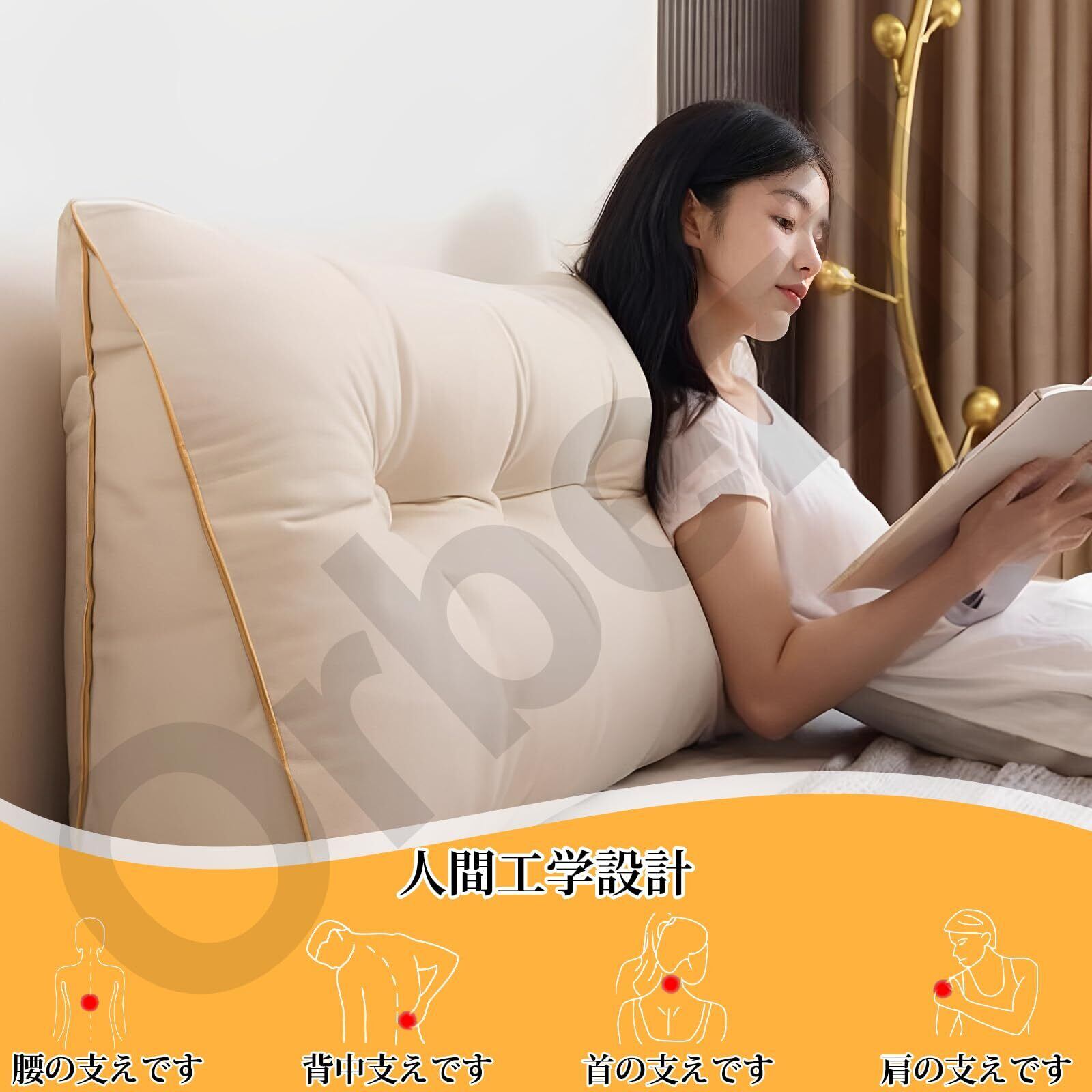 【在庫処分】Orbezil クッション 背もたれ 大きい ヘッドボード 三角ピロー ボディピロー cushion 読書 映画鑑賞 寝ながら スマホ ダークグレー 150*45*15cm