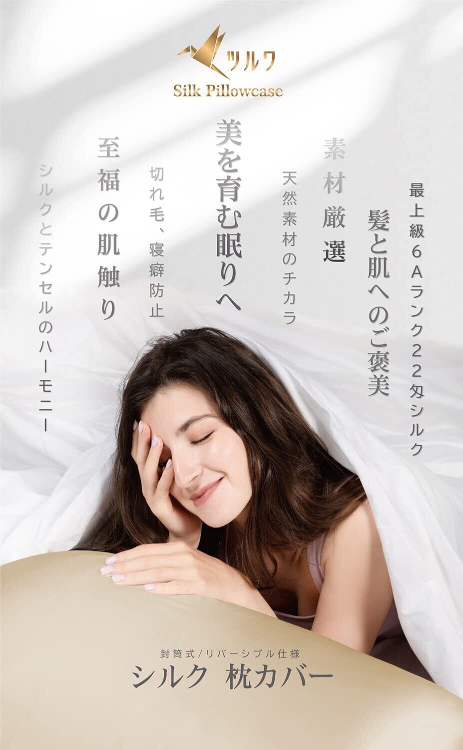 【2022最新】ツルワ シルク枕カバー 6Aクラスシルク100% 22匁 片面シルクタイプ テンセル 封筒式 洗える シルクピローケース 摩擦軽減 美肌 美髪 快眠 寝癖防止 肌に優しい ( シャンパンゴールド 43×63cm )