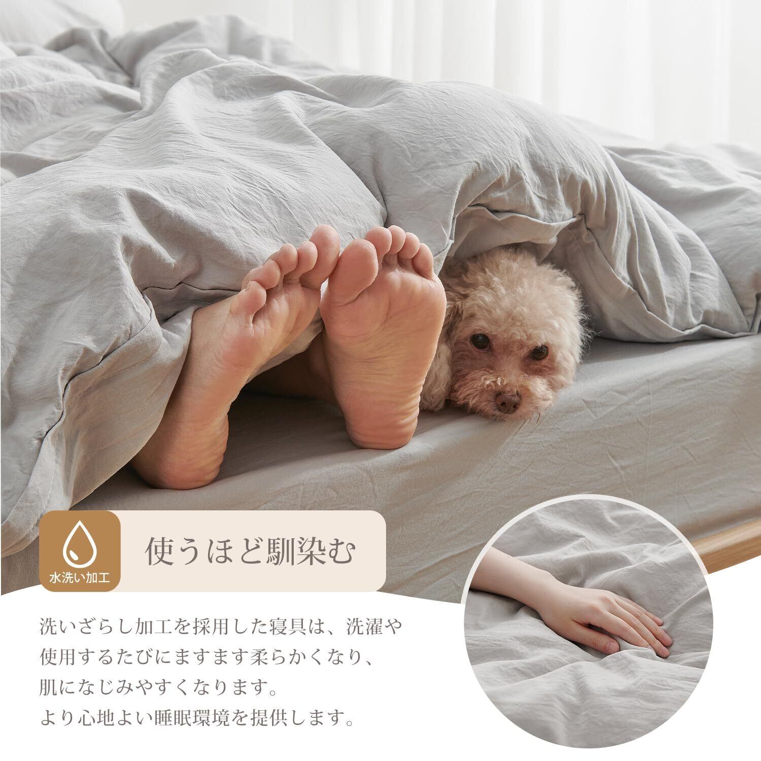 <洗いざらし&超柔らか肌触り>: 洗いざらしとは何度も洗って風合いが自然になったもの。お使いいただく初めから自然な風合いや、やわらかな肌触りを楽しめるように「洗い加工」を施しています。この加工を施した寝具は、洗濯や使用するごとにさらに柔らかくなり、肌馴染みも良くなります。
