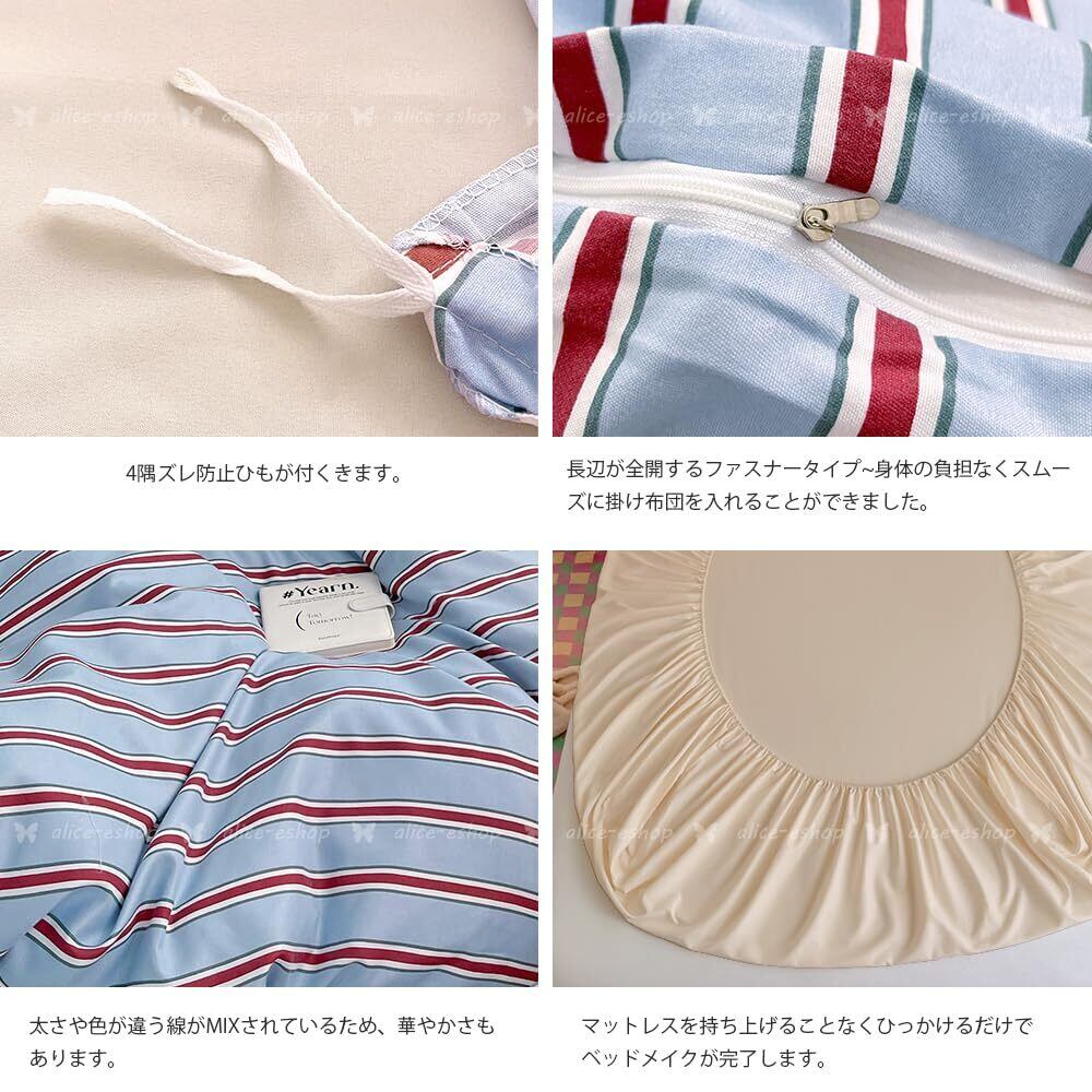 「§zz.luxi」布団カバーセット シングル 3点セット ins ストライプ シンプル 寝具カバー 洋式・和式兼用 ベッドカバー 掛け布団カバー 韓国 ボックスシーツ 枕カバー シーツカバー 肌に優しい ピーチスキン加工 北欧風 オールシーズン(レッドブルー シングル 3点セット)