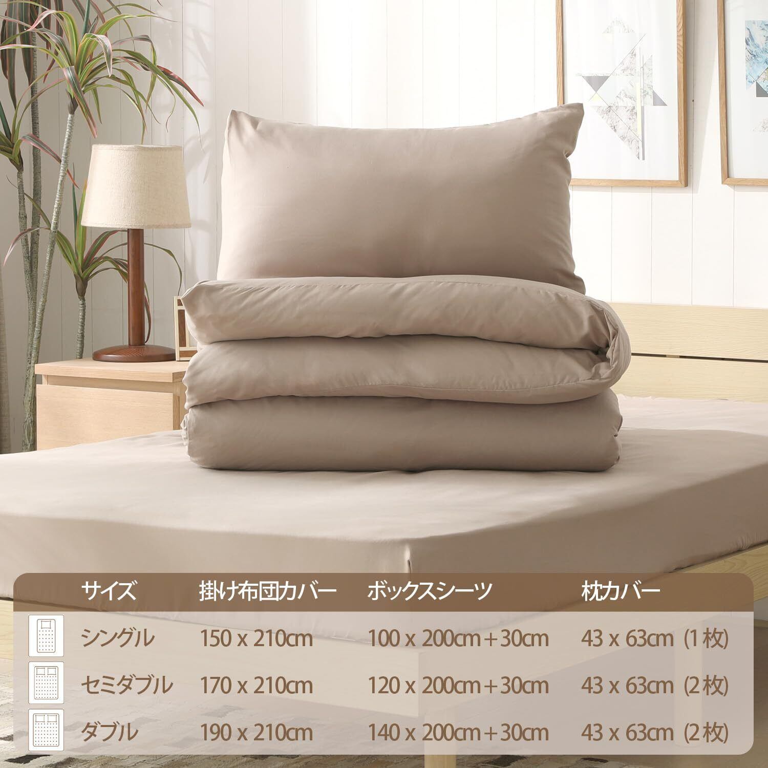 Sunquinn 布団カバー シングル 3点セット 寝具カバーセット 掛け布団カバー ボックスシーツ 枕カバー 洗える 洋式・和式兼用 丸洗いOK 吸水速乾 抗菌 無地 洗い替え 肌に優しい オールシーズン (シングル・3点セット・グレージュ)