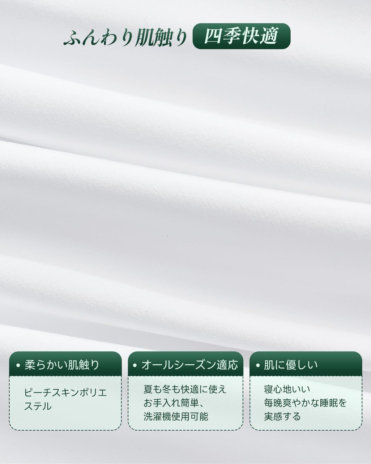 【柔らかな肌触り】ポリエステル100%の素材を使用し、ピーチスキン加工が施されているため、非常に柔らかくて肌に優しいです。シワになりにくく、毛玉もできにくいので、長期間使用しても快適さを保ちます。敏感肌の方でも安心して使用できます。