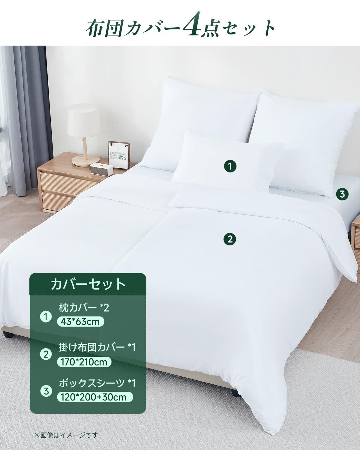 Z-HOM 寝具カバーセット 布団カバーセット 洋式ベッド・和式布団兼用 掛け布団カバー ボックスシーツ 枕カバー 洗い替え速乾タイプ ピーチスキン加工 ゼミダブル・4点セット ホワイト