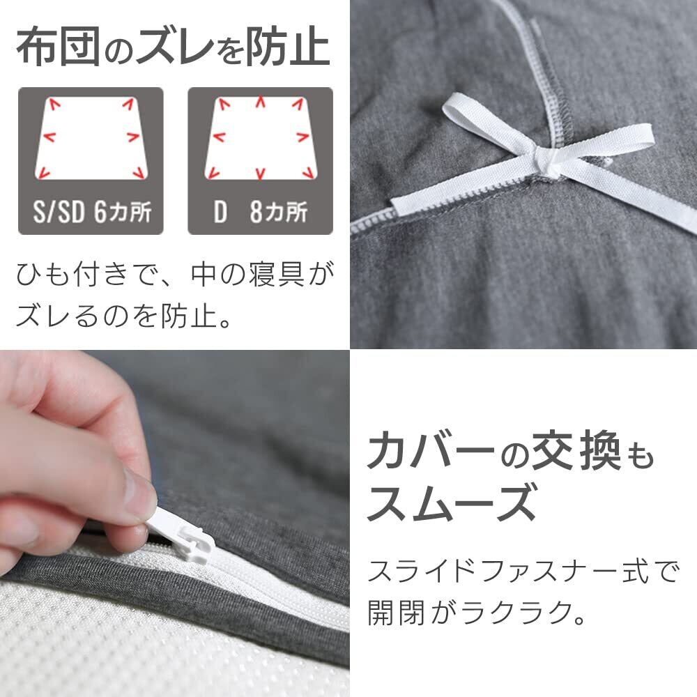 アイリスオーヤマ シワ軽減 肌になじむ天竺編み掛け布団カバー セミダブル 濃淡2色の杢表現 落ち着いた色合い Tシャツ/タオルケットのような肌触り 高い伸縮性でシワになりにくい 長く使える 生地の縮みや型崩れ防止に 洗濯機で丸洗いOK ズレ防止6ヶ所紐付き ダークグレー KKC-TCK-SD