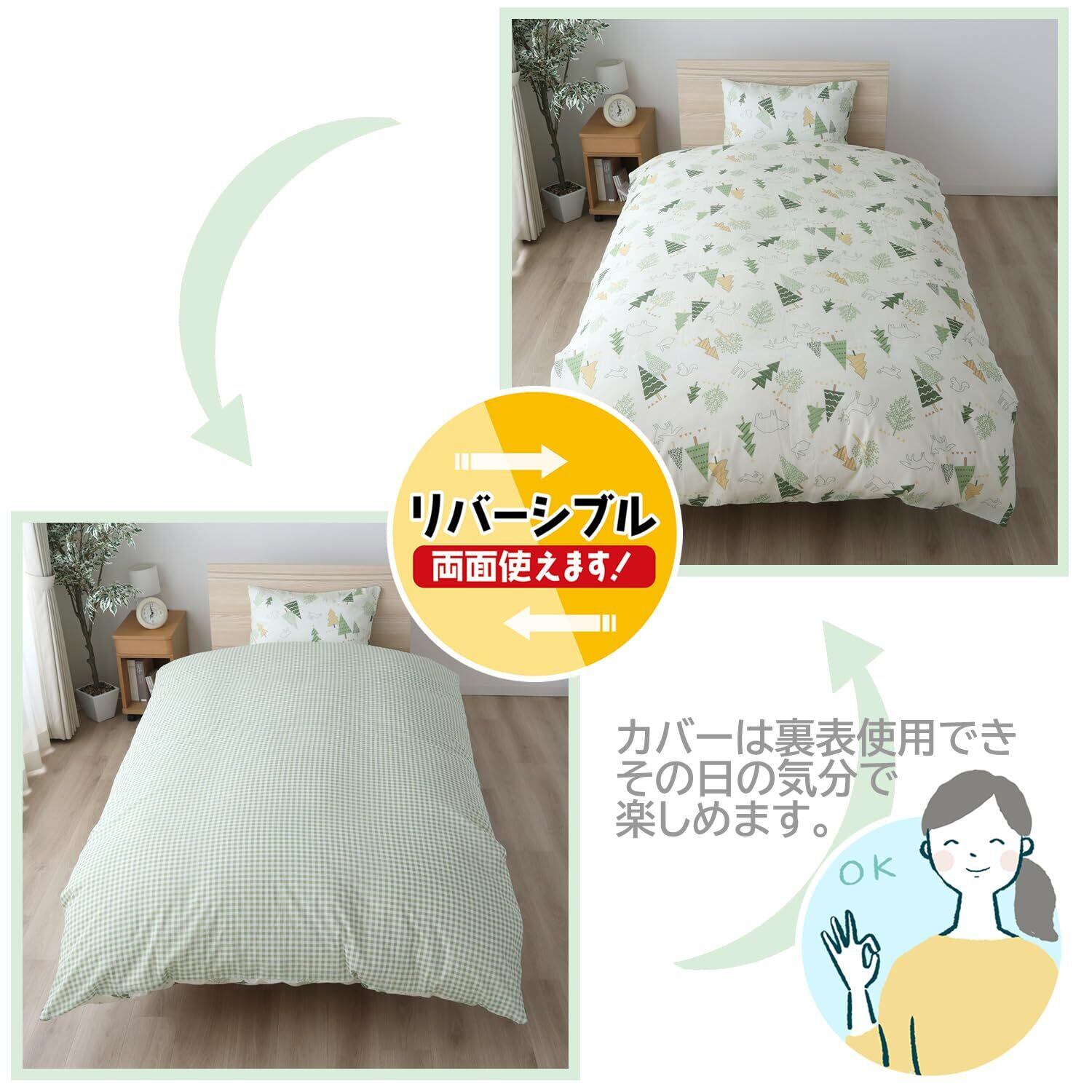 カバーは両面使えるリバーシブル仕様。別売りの枕カバー、敷布団カバーとの組み合わせで様々なカラーコーディネートも楽しめます。