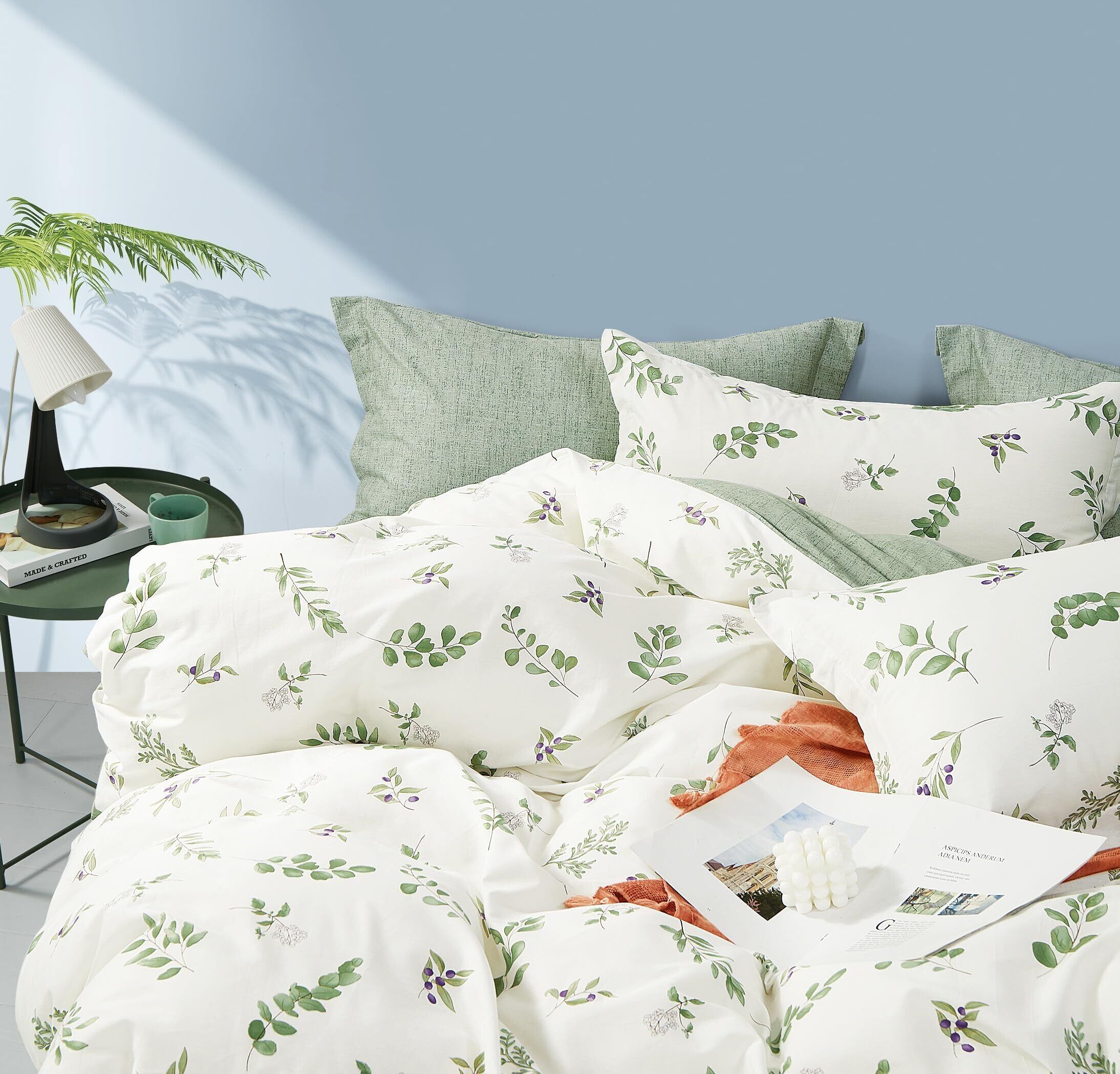 【在庫セール】掛け布団カバー 綿100% 単品売り 掛けカバー シングル 優しい肌触り 柔らかい 防臭 通気性 抗菌 四季通用 緑/白い シングル