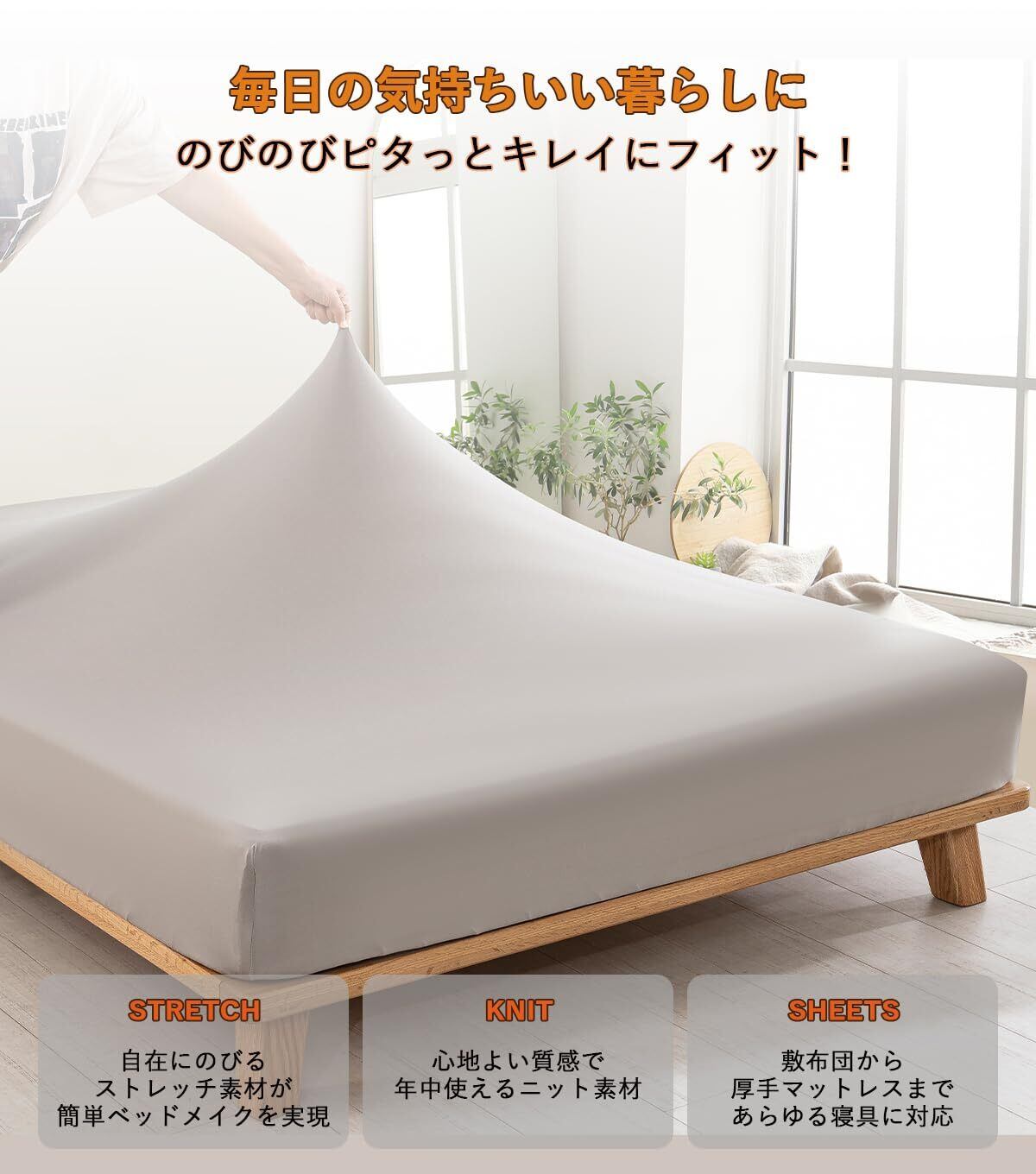 のびのびシーツ ワイドクイーン キング ワイドキング ロング ショート兼用 ストレッチシーツ 伸びる ボックスシーツ やわらかニット フィットシーツ 薄型 厚型 ベッドシーツ 伸縮 マットレスカバー ベッドカバー 敷ふとんシーツ 無地 オールシーズン グレージュ