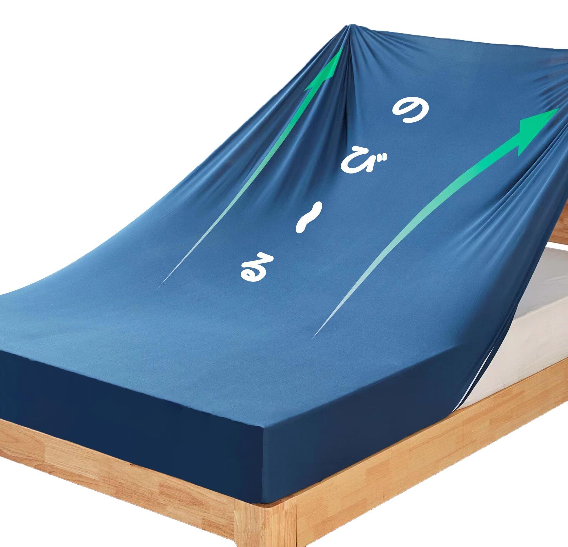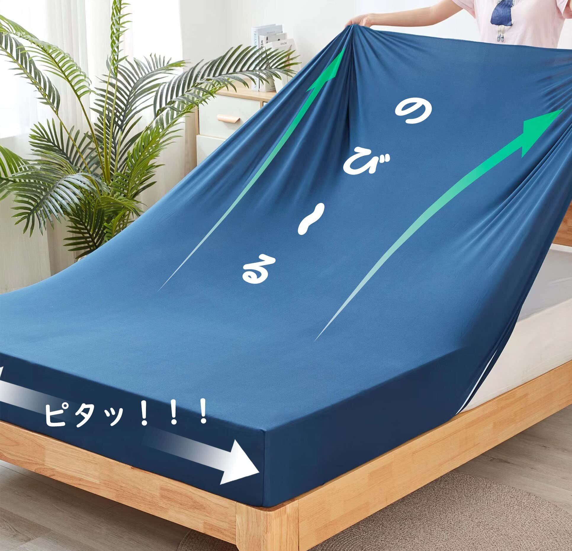 【在庫処分】【弾力 MAX】MISOLER ボックスシーツ 吸水速乾のびのび ベッドシーツ 毛玉なし ベッドカバー マットレス・敷ふとん兼用 ぴったり 通気性 夏・冬オールシーズン しわにならない 着脱簡単 抗菌防臭 (シングル~セミダブル用・100~120cm×180~210cm ネイビー)