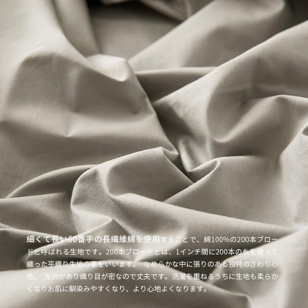 【心地よい綿100%生地】60番手の上品な超極細・長繊維綿を使用することで、なめらかな中に張りのある独特のさわり心地。 高密度の織りが、ダニや花粉からあなたの眠りを守ってくれます。光沢があり織り目が密なので丈夫です。洗濯を重ねるうちに生地も柔らかくなりお肌に馴染みやすくなり、より心地よくなります。