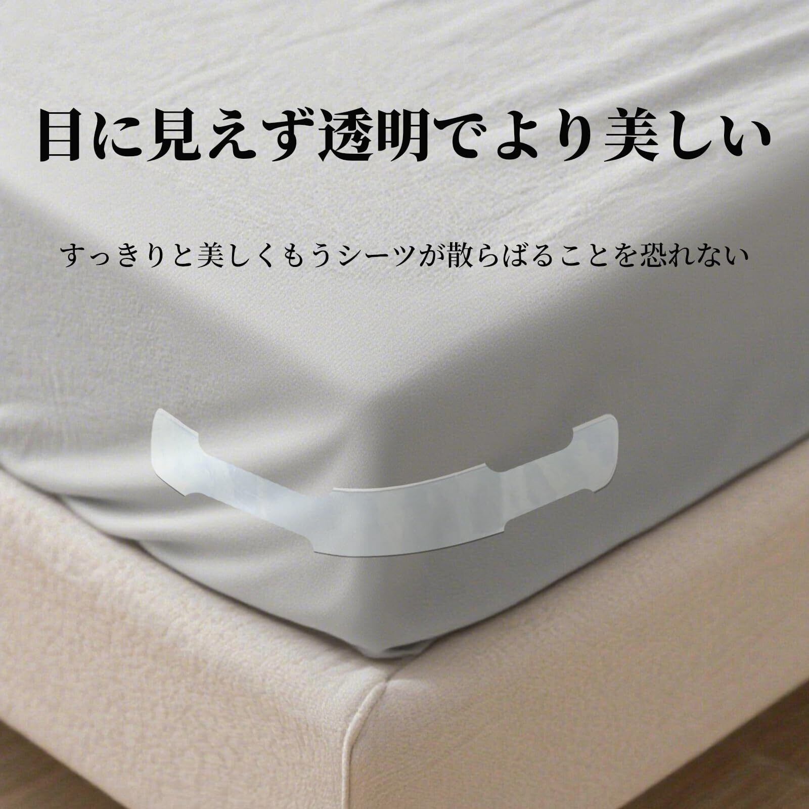 【目に見えないシンプルなデザイン】このベッドシーツクリップは、シンプルで寛大な外観を持っており、目に見えない透明な隠し式デザインで、よりきちんと美しく、寝具の色とコーディネートされ、寝室の美しさを高めています。