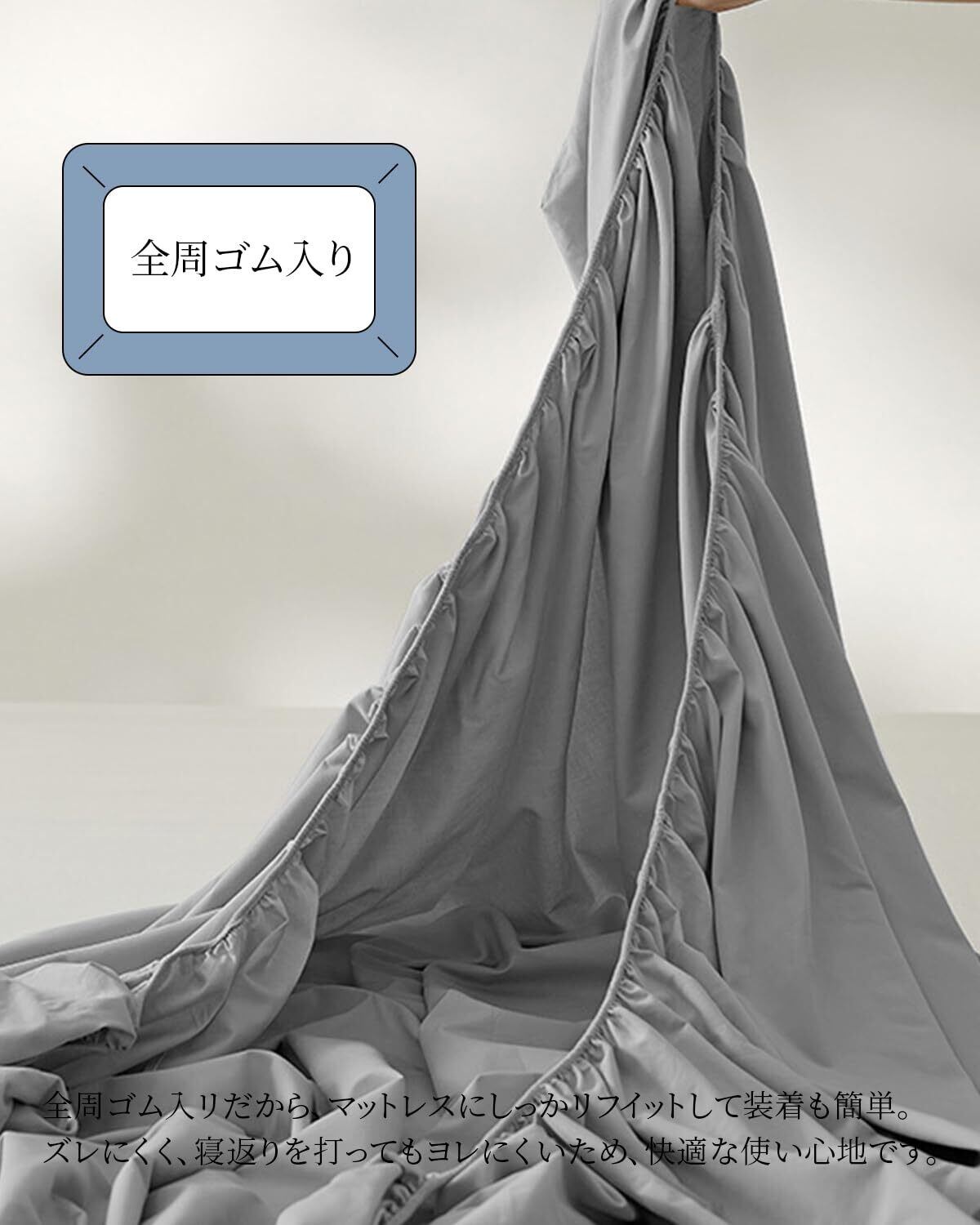 ホスール(HOSUR) 敷き布団カバー ワンタッチシーツ 洗いざらし シングル しき布団カバー 敷き布団/マットレス対応 ピーチスキン加工 柔らかい肌触り 敷き布団/マットレス対応 和式 洗える 吸汗 薄手 乾きやすい おしゃれ 通気性 強化ゴム付き (105X215cm・グレー)