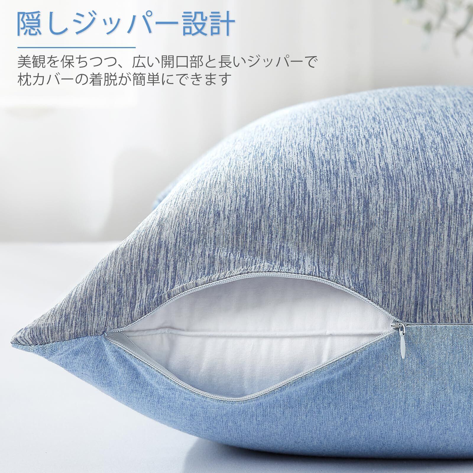 【隠しジッパー設計】 ファスナー部分を隠したデザインで美観と安全性を両立。金属部分が肌に触れる心配がなく、顔への刺激も軽減します。ワイド開口部設計で枕の出し入れも簡単です