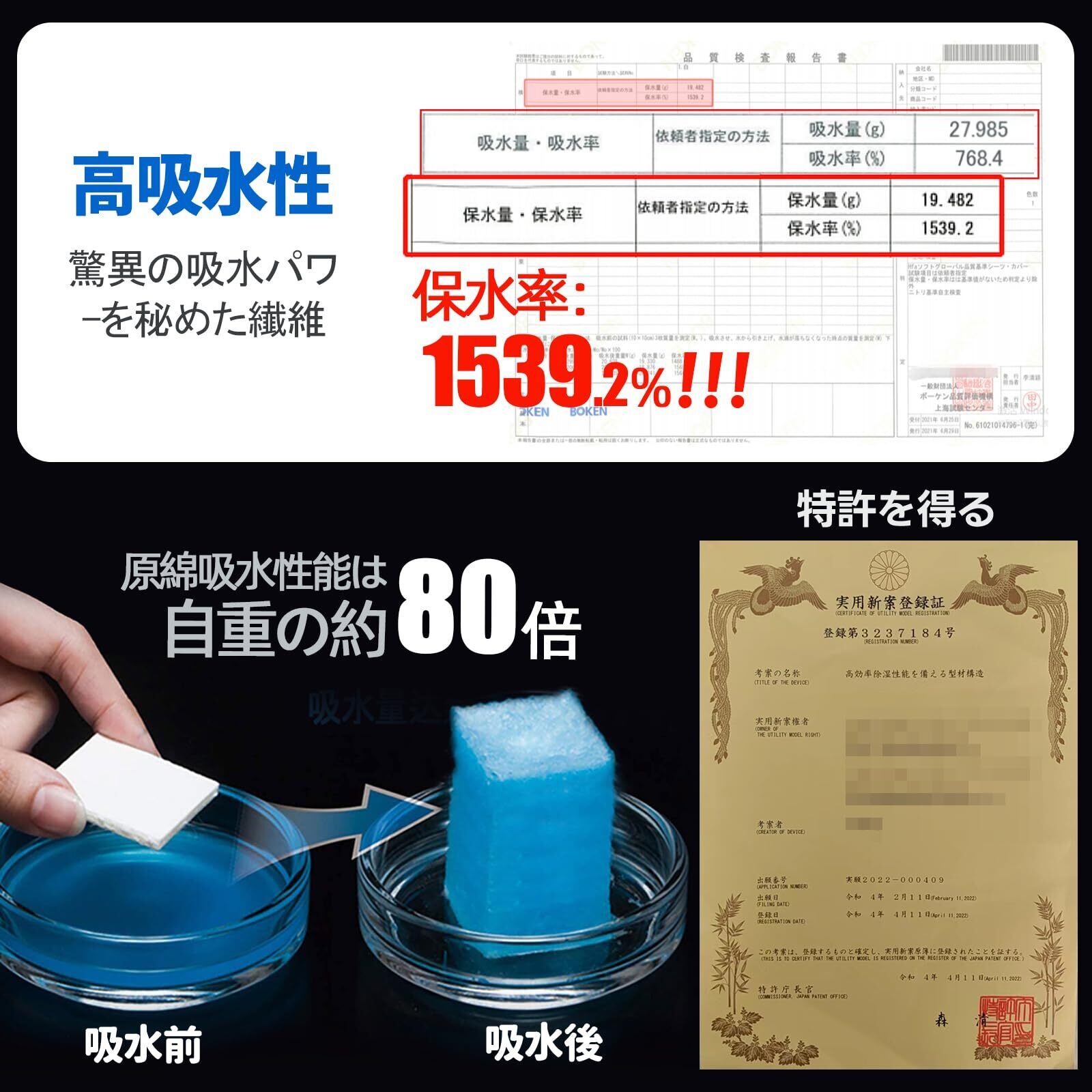 7倍の吸湿力:日本専門的な検査機関BOKENの品質報告書によると、MeillyHoomi除湿シートの保水率は1539.2%になっており、吸湿性能は棉の7倍で、約普通B型シリカゲル粒子の2倍です