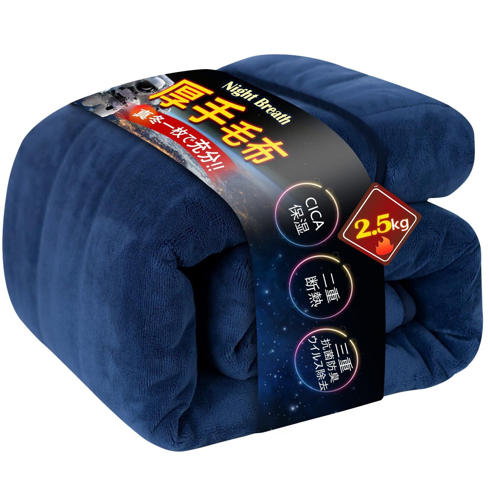 【新春セール】【極厚極上暖・帝人TEIJIN中綿】毛布 シングル 厚手 【アルミシート+エアロゲル断熱】6層構造 CICA保湿加工 掛け布団 掛けふとん 冬用 帝人TEIJIN 光触媒 抗菌防臭消臭 襟付き フランネル 超極細繊維 合わせ 保温 軽量 洗える 毛抜けない 静電気防止 140x200cm ネイビー